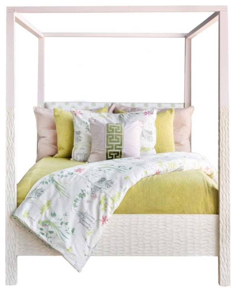 Other textures to watch: Not all of the textures had dramatic relief. Soft, mohair-like velvet and buttery leather covered many of the new sofas that we sank into at the fall market. And soft linen slipcovers, like those in Amber Lewis’ collection at Four Hands, had a subtly textured but luxe hand. Global trend expert Patti Carpenter, whose talks at High Point always draw crowds, says lacquered, wet-looking finishes are coming down the pike, but for the moment, it’s all about a drier and softer touch.