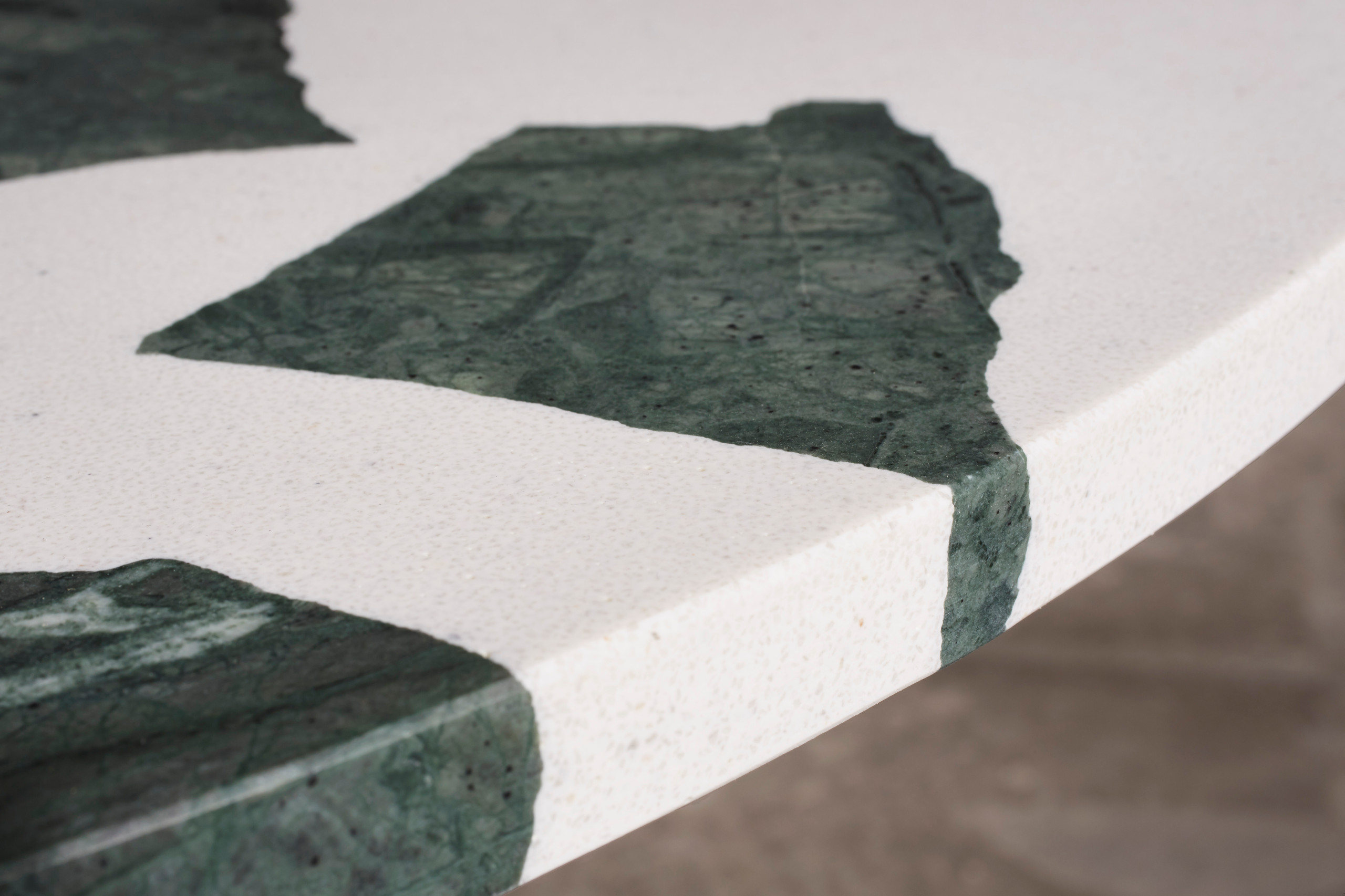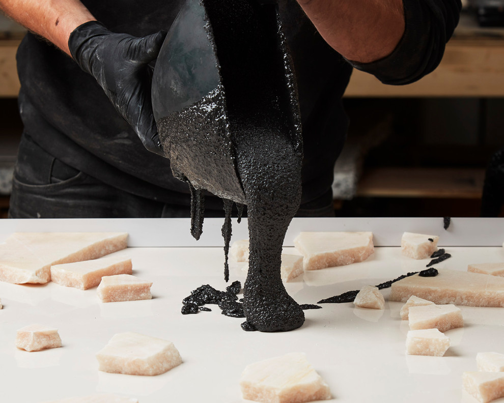 Photo from Altrock. Black resin is poured over chunks of recycled marble.