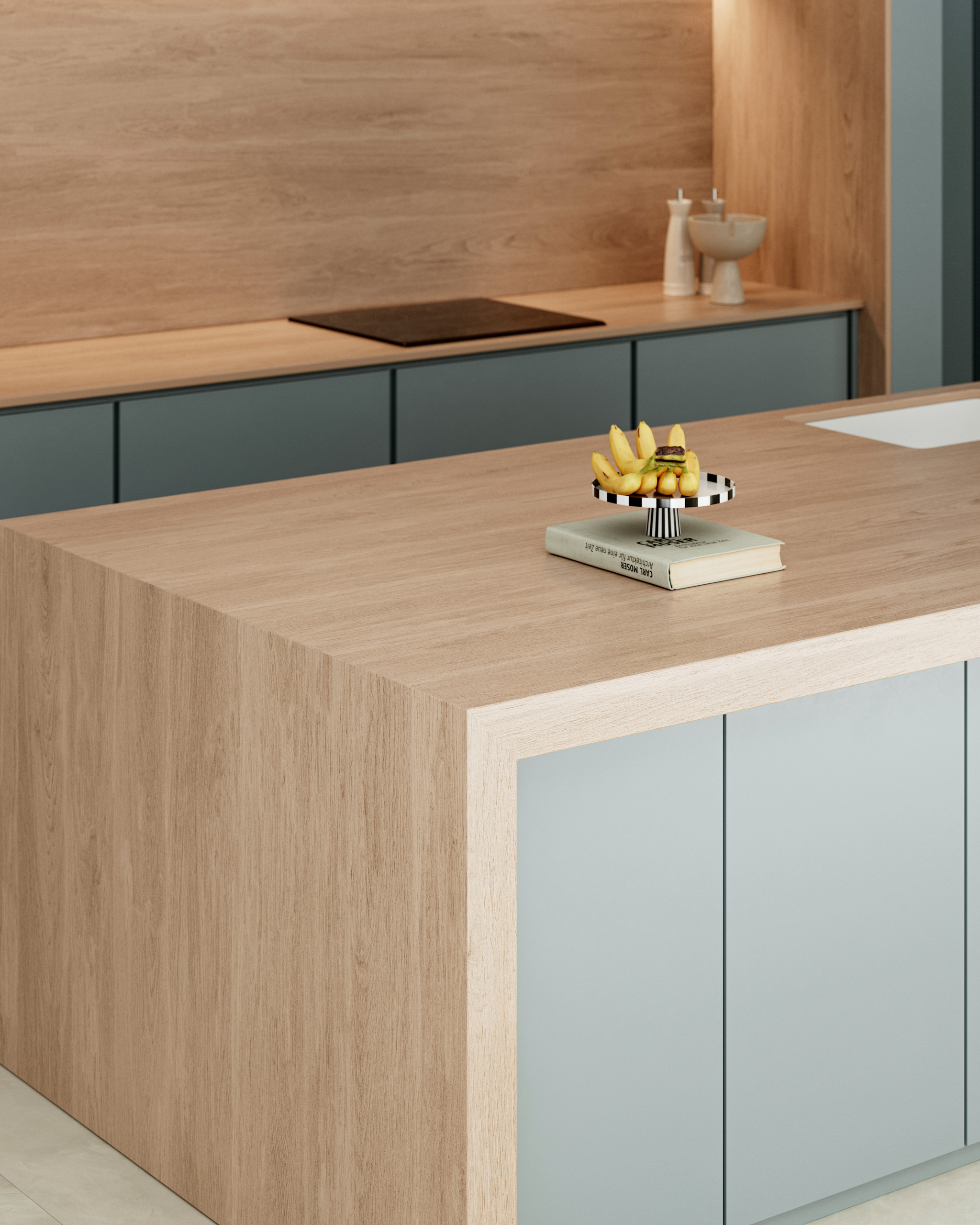 Dekton’s new Amazonik line, for example, captures the grain and warmth of wood, demonstrating how texture can bring engineered materials to life while keeping them durable and low-maintenance. The Amazonik line includes two oak-inspired tones: Kedar, a warm, balanced shade with linear veining, shown here, and Zira, a whitewashed-oak look.