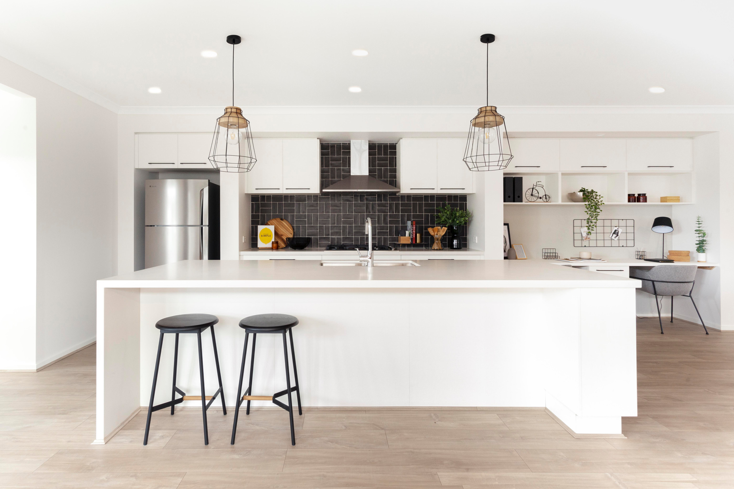 Whether your kitchen layout is designed around a work triangle or work zones, you’ll need the kitchen office to be both close and out of the way.