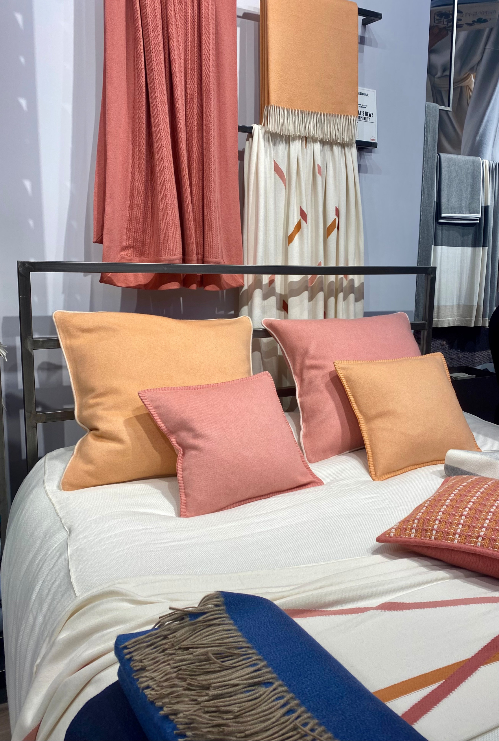 Masserano Cashmere’s collection included bedding and luxurious throws. Sandriver used live weaving to show how its Mongolian cashmere is made.
