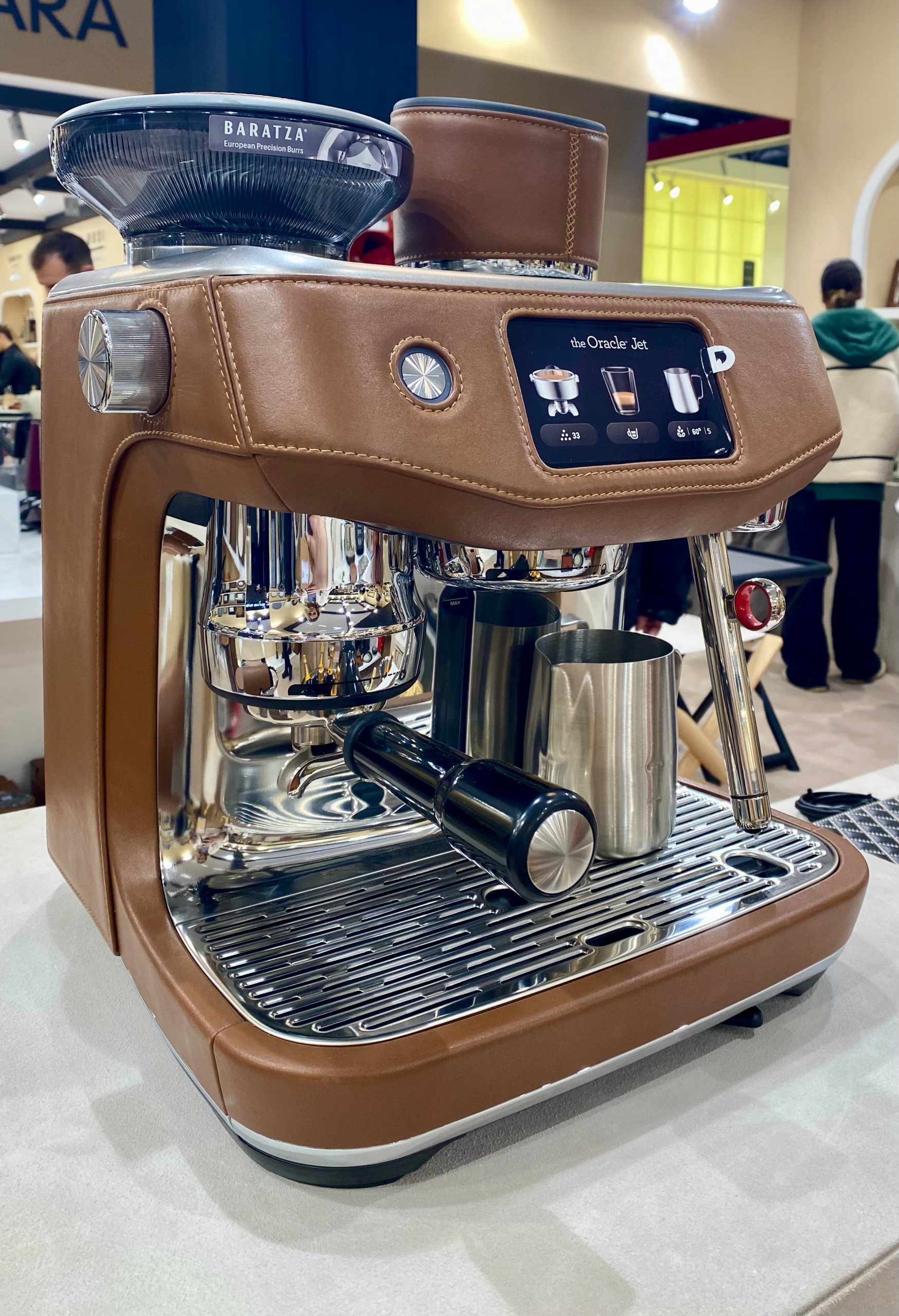 For example, Giobagnara, known for its leather goods, displayed woven laundry baskets, trash cans, coasters and more. It also showed how a leather-clad coffee machine (above) can become part of an elevated design.