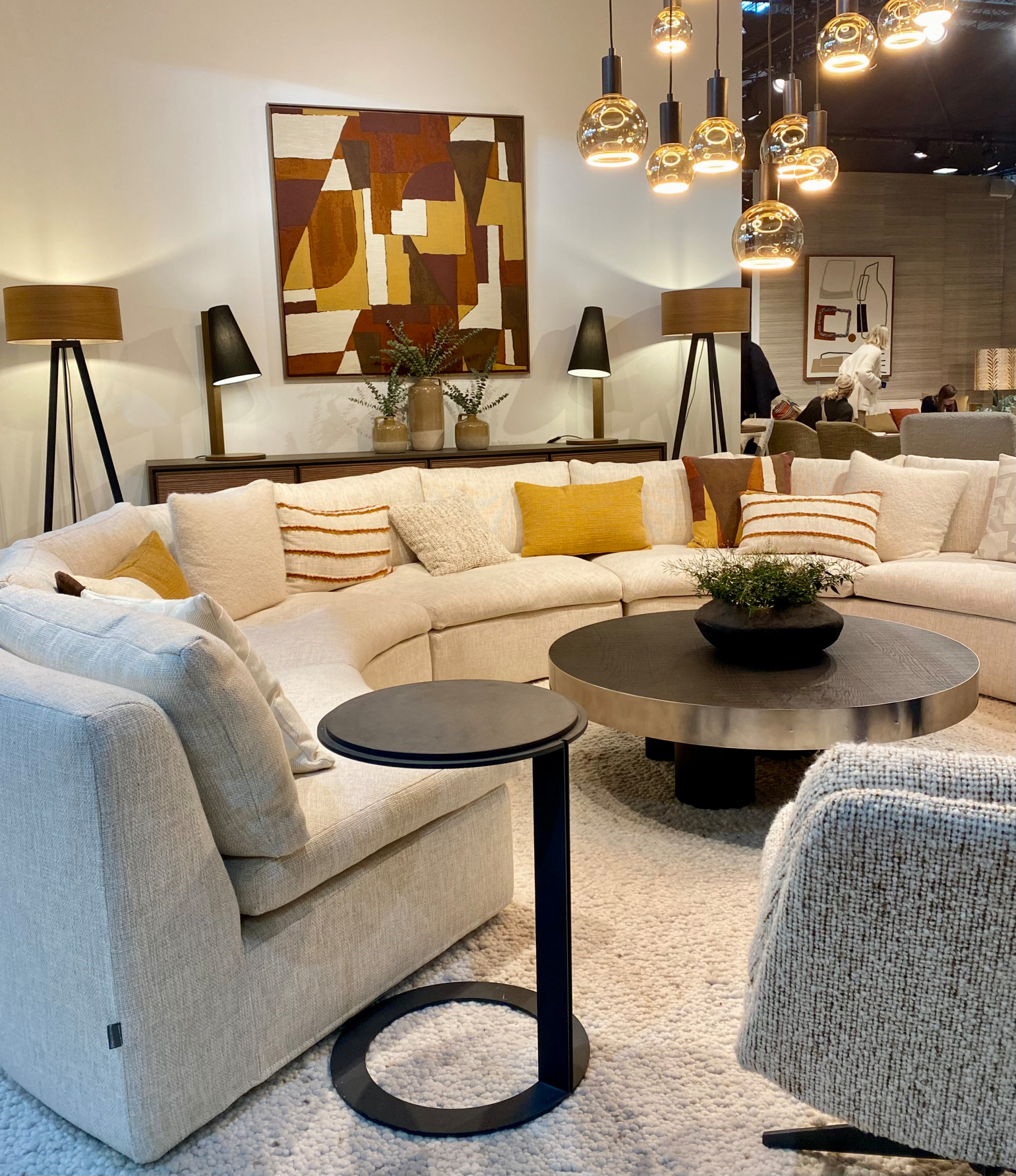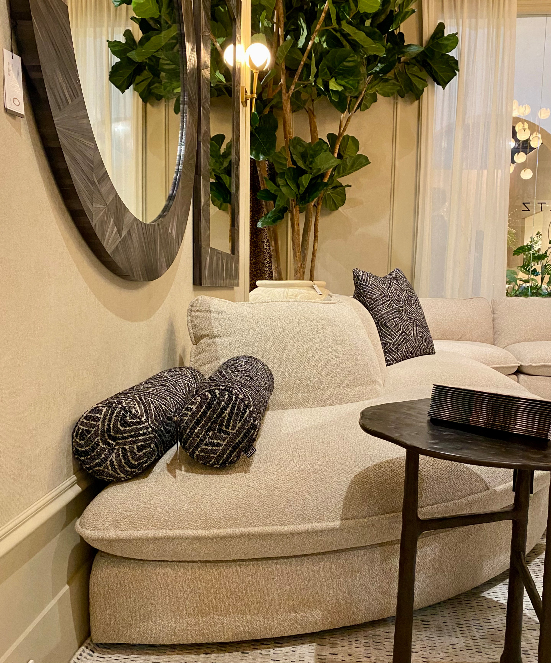Large, curvaceous sofas — some almost circular, like the PH Collection sofa in the previous photo — were found at booths for Jonathan Adler, Eichholtz (pictured above), and many other brands. The designs offer seating that centers around social moments.