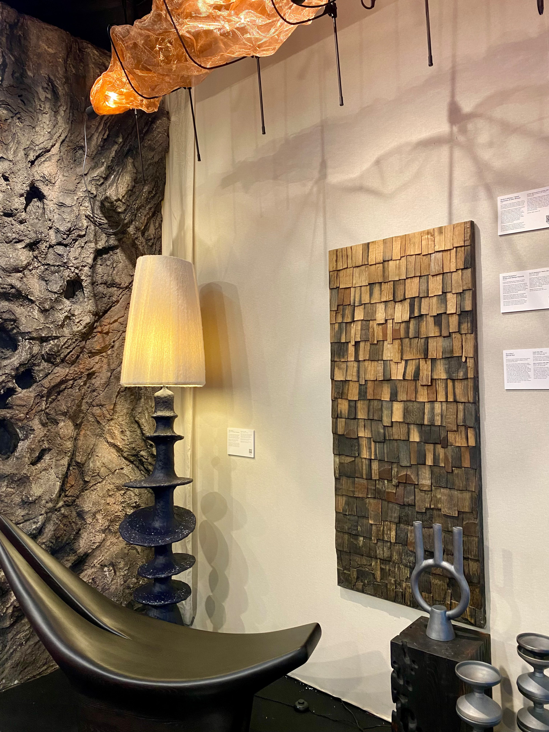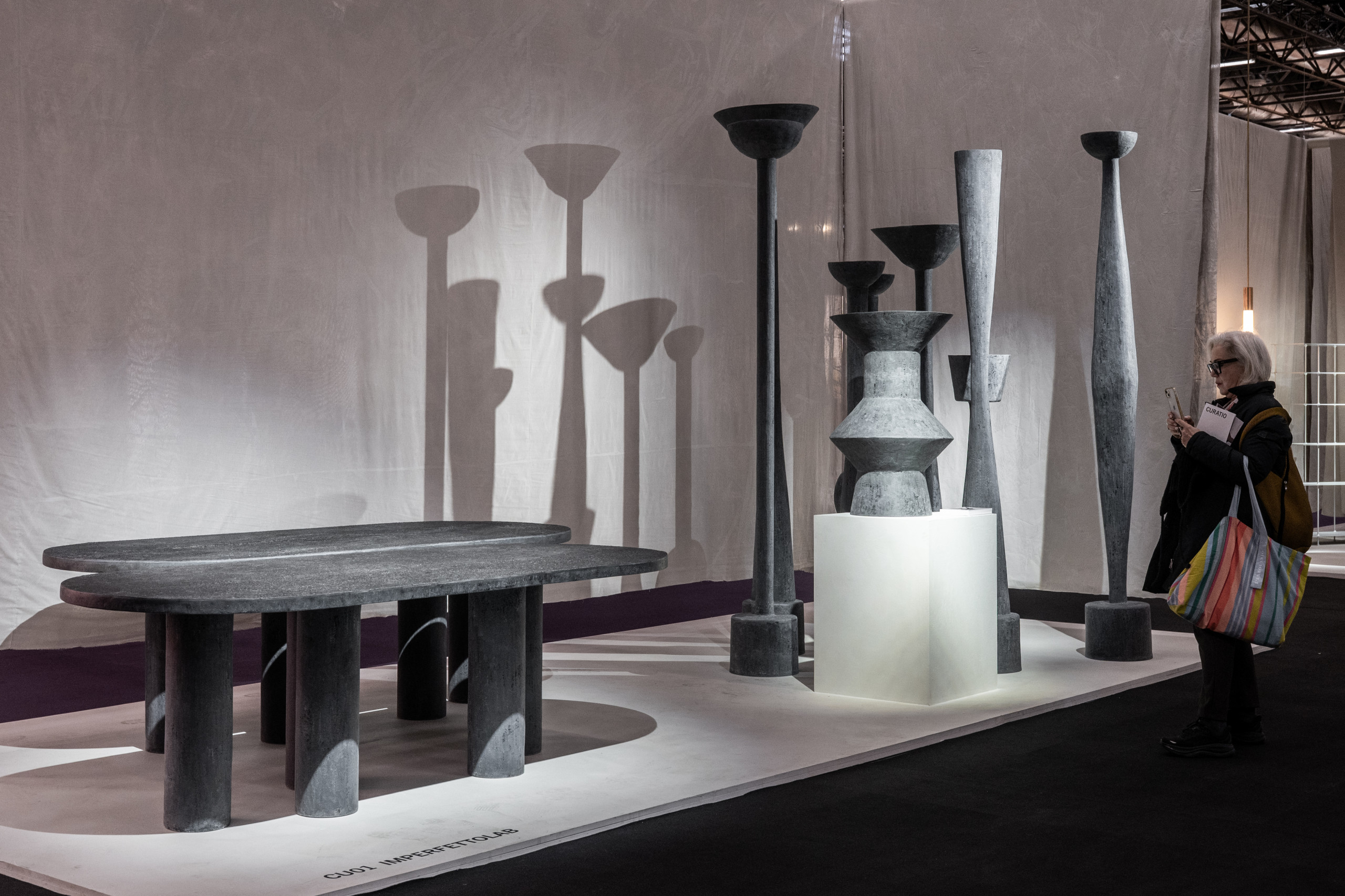 The Curatio installation, curated by Thomas Haarmann, brought together sculptural pieces from a collective of creators illustrating this point. The pieces included the Conica alabaster lighting collection by Samuel Accoceberry Studio (previous photo) and the striking Cora table (above), designed by Verter Turroni for Imperfettolab, whose base makes as much of a statement as its top.