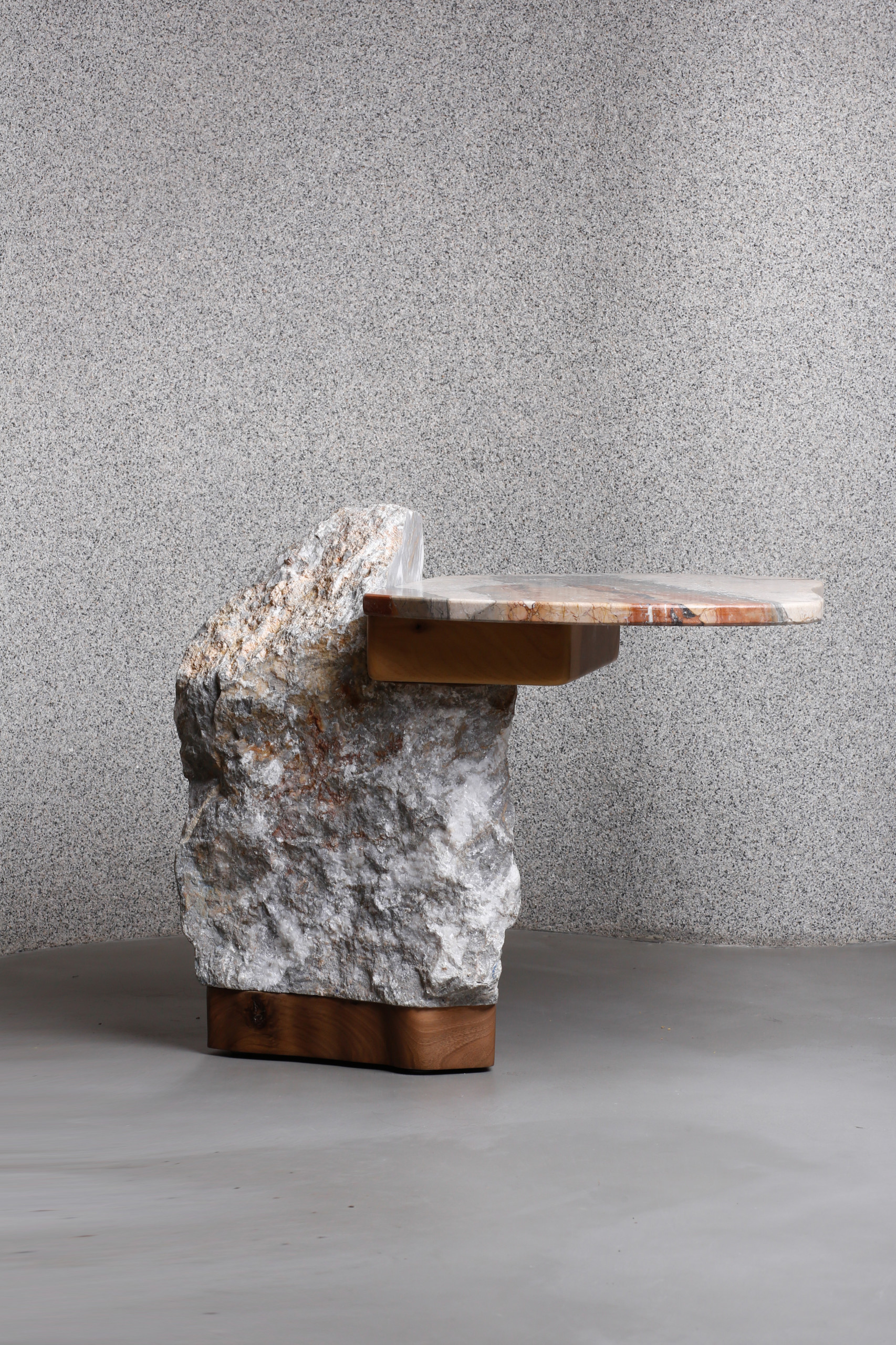 ML Ateliers embraced the concept of combining function with art in Moroccan designer Meryam Lahlou’s furniture pieces, including the striking Lava table made from marble, inlaid wood and stone.