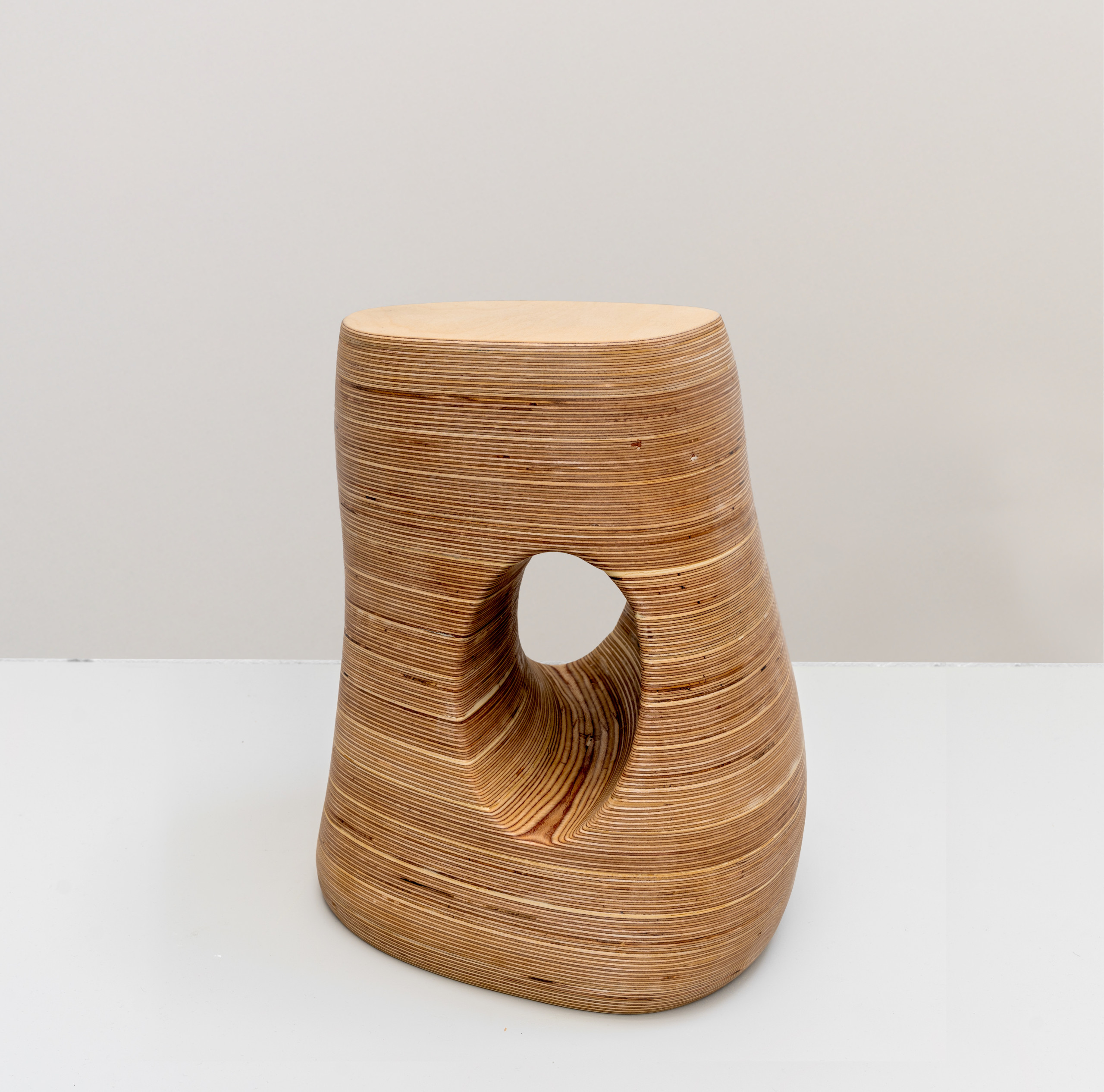 The stools are made from plywood formed into pleasing curves that feel soft to touch. “These pieces are made to be lived with and looked at,” David says. “They’re sculptural but grounded — human forms with practical purpose.”