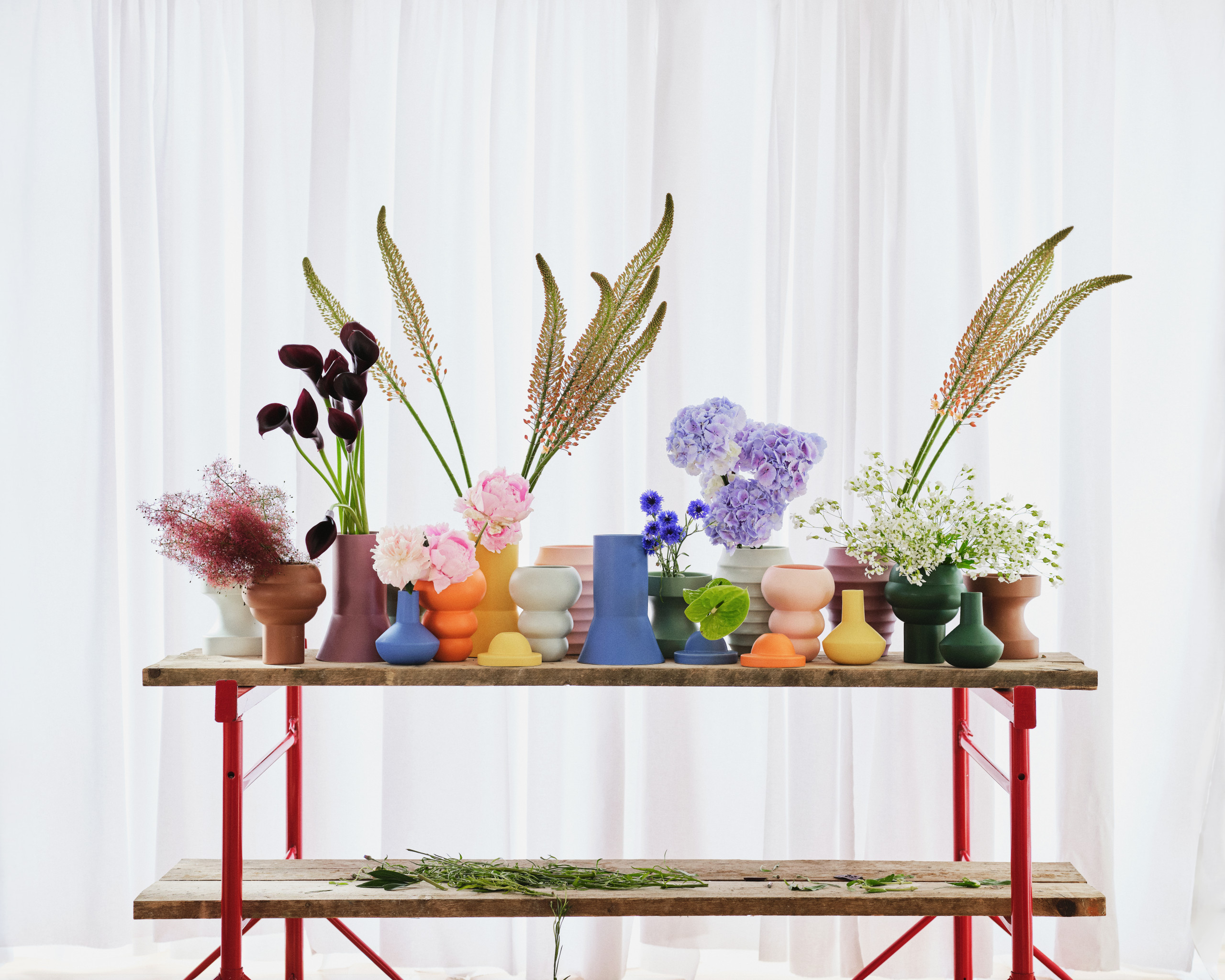 Ceramicist Arjan Van Dal’s collaboration with The Conran Shop, for instance, is a collection of vases in nine different hues. The line, called Family of Vases, is inspired by a series designed by Sir Terence Conran in the 1990s, and consists of different geometric shapes.