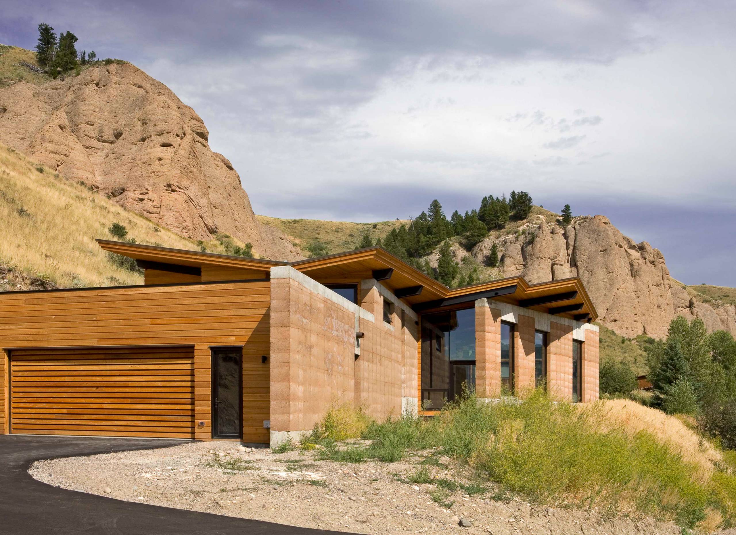 This custom home in Jackson Hole, Wyoming, by EK Reedy Interiors and Ward + Blake Architects was constructed using rammed earth techniques (with on-site subsoil) and post-tensioning rods.
