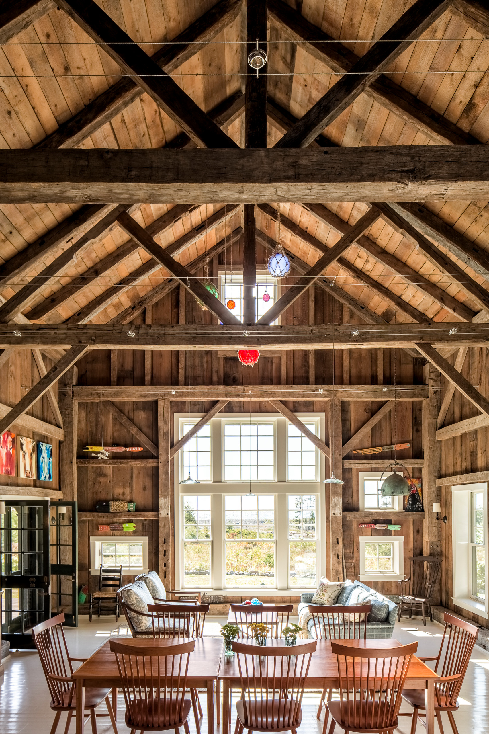 This Boston-area summer house by Albert, Righter & Tittmann Architects is built around salvaged barn beams.