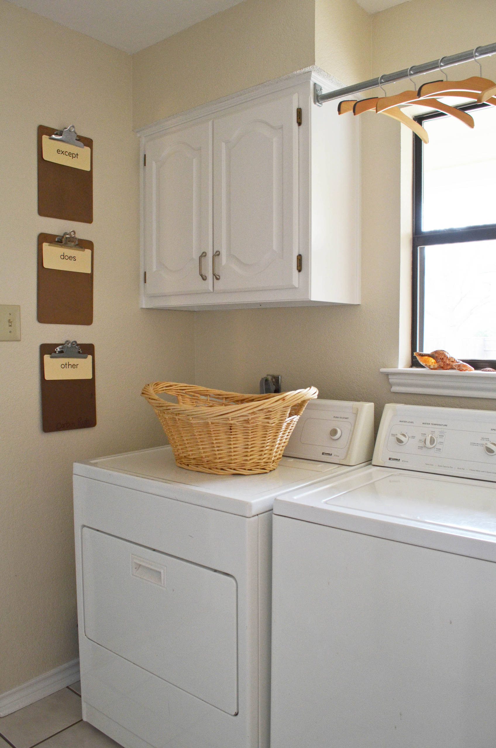 - A clipboard or small corkboard. Hung on the wall, this makes the perfect place to display a helpful stain-removal chart and washing instructions.