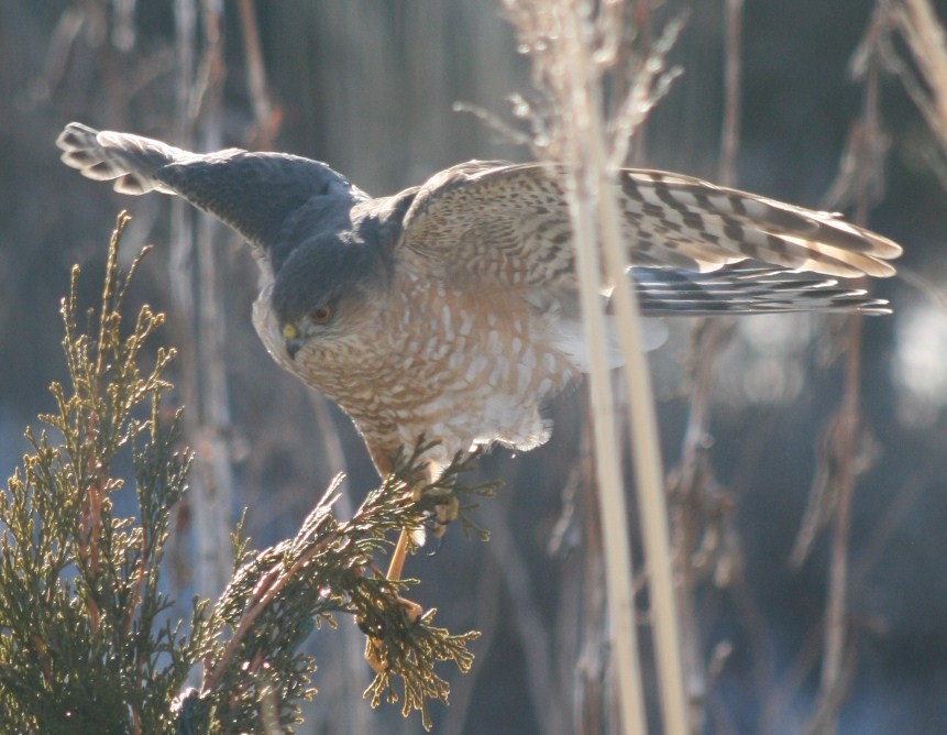 Leaving up your plants welcomes all sorts of wildlife you’d never see, even though they’re quite common. One year this sharp-shinned hawk visited because juncos were taking refuge in the thick garden cover. The hawk did eventually nab a meal, but that’s OK — the garden was helping everyone, doing what nature does best and right out the back door. What a cure for seasonal affective disorder.