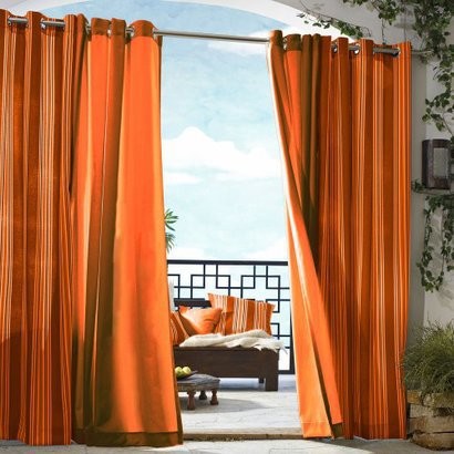 Rusty orange indoor-outdoor drapes from Target add color, create privacy and offer shade.