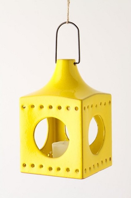 Add yellow through your accent lighting. I am bananas for these yellow lanterns. Use three fun lanterns on an outdoor coffee table or add a few down your dining table. You'll get major color during the day and the glow of candles at night.
