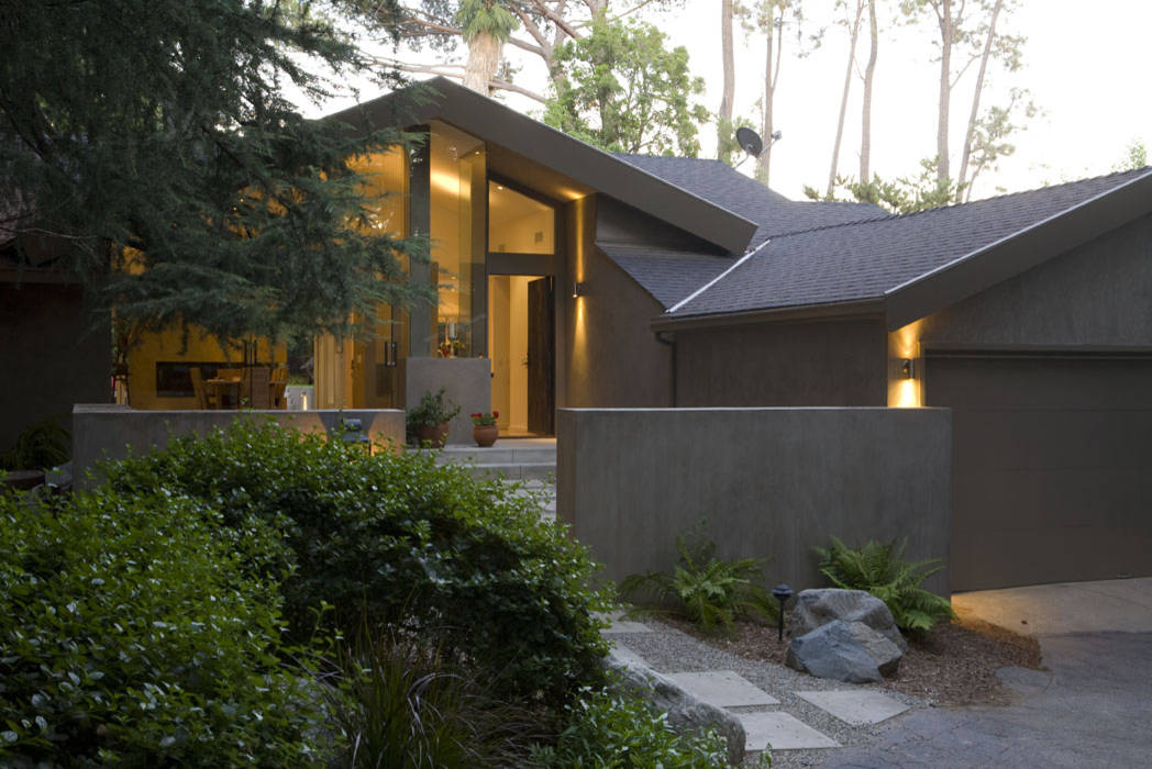 The courtyard is large enough for a small stone patio, low-water plantings and a recirculating fountain, effectively creating an open-air entryway room.