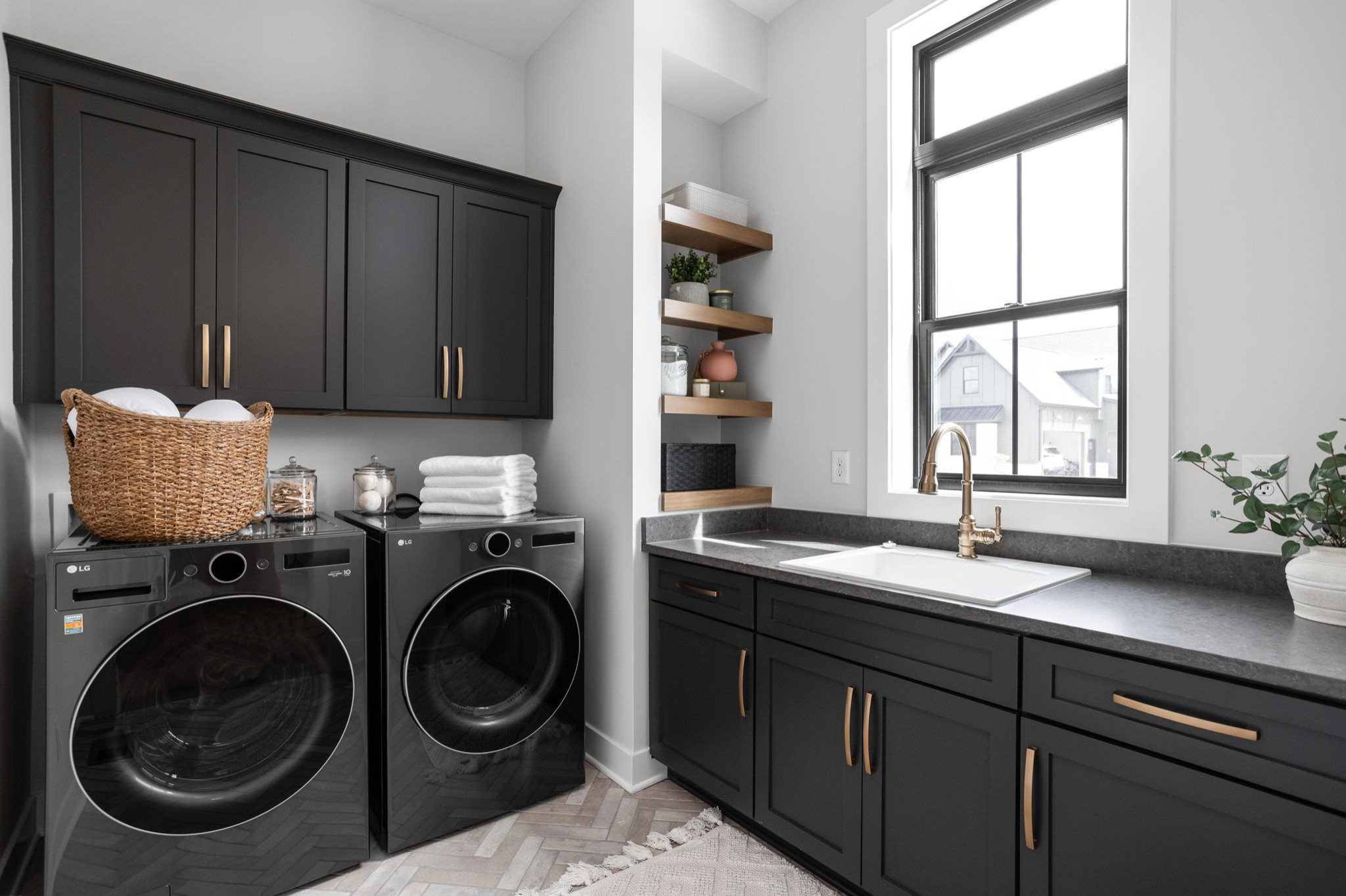 “A generous countertop serves as a functional folding and sorting zone, reducing the need to move laundry throughout the home. Thoughtfully placed open areas and pullout storage allow for flexibility — perfect for laundry baskets, hampers or items in daily rotation.”