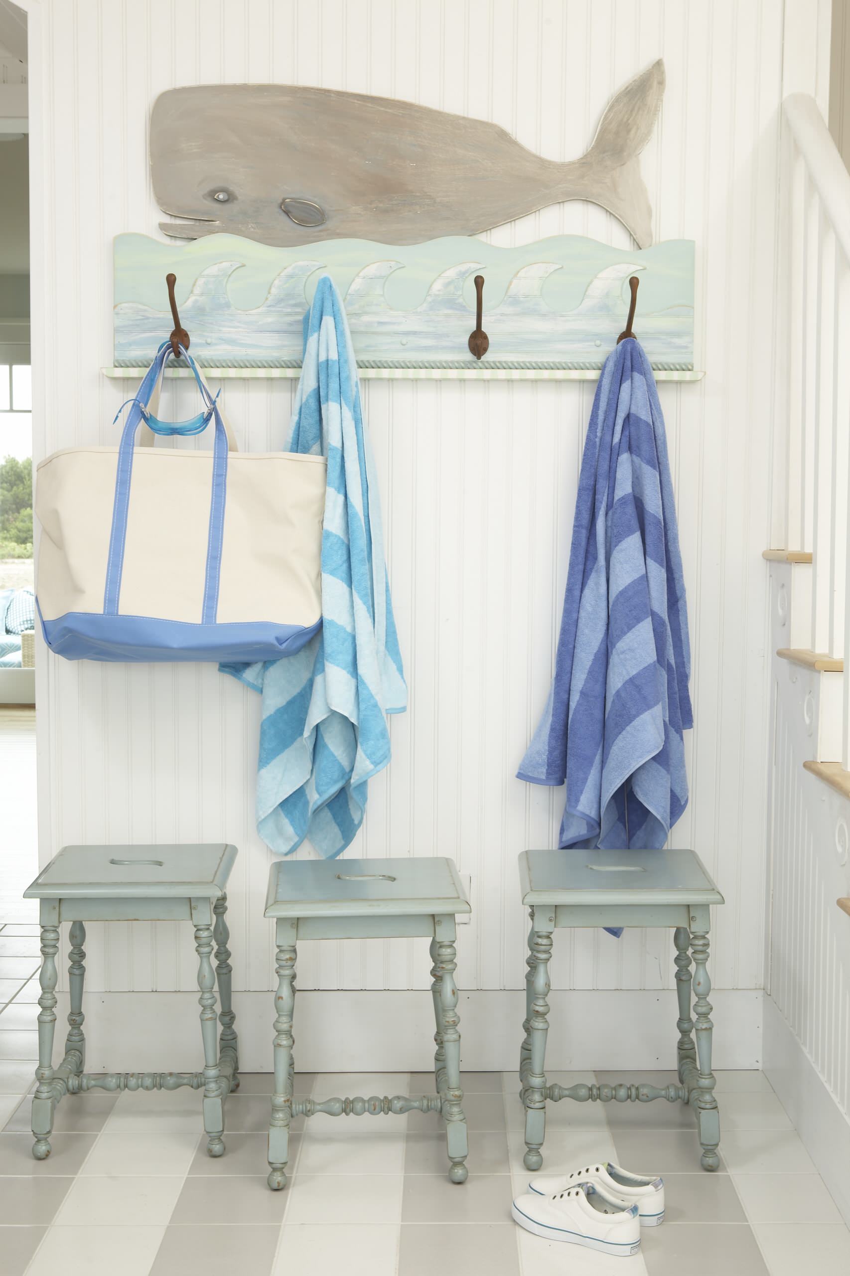 If your beach umbrella, chairs and sand toys can be used for another year, clean off the sand and dirt before storing them. Wash towels and swimsuits that are in good shape and place them in a clean beach bag. Store totes and other summer gear in the back of a closet or on an upper shelf in your garage.