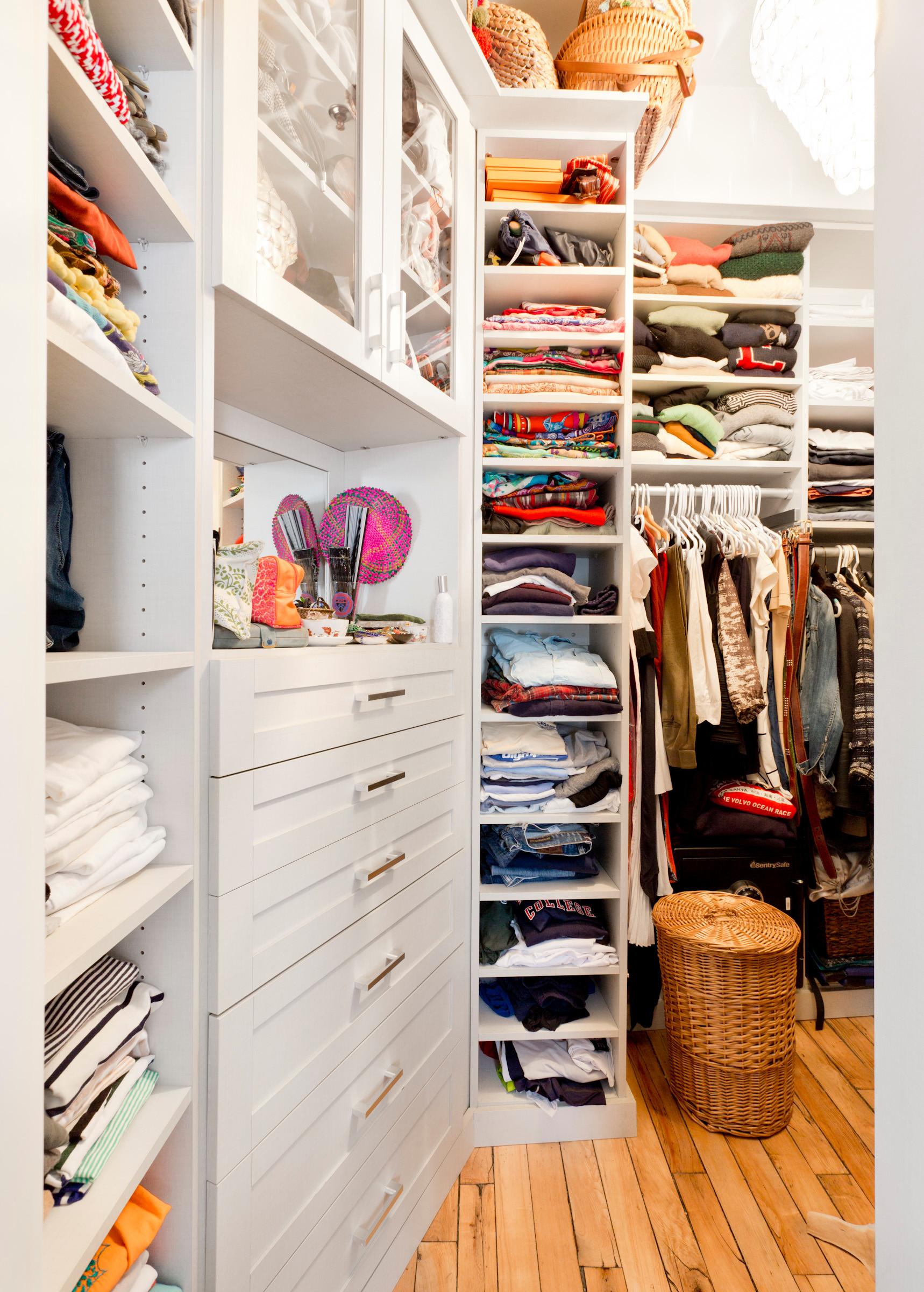 Some people like to save sentimental T-shirts and sweatshirts from schools, vacation spots, concerts or sporting events, even though they don’t wear them regularly. Instead of storing infrequently worn items with everyday clothes, consider packing them in a box or storage container and placing the box on the top shelf of a closet, or in a basement or attic. This will keep your drawers and closets free for clothes you wear frequently.