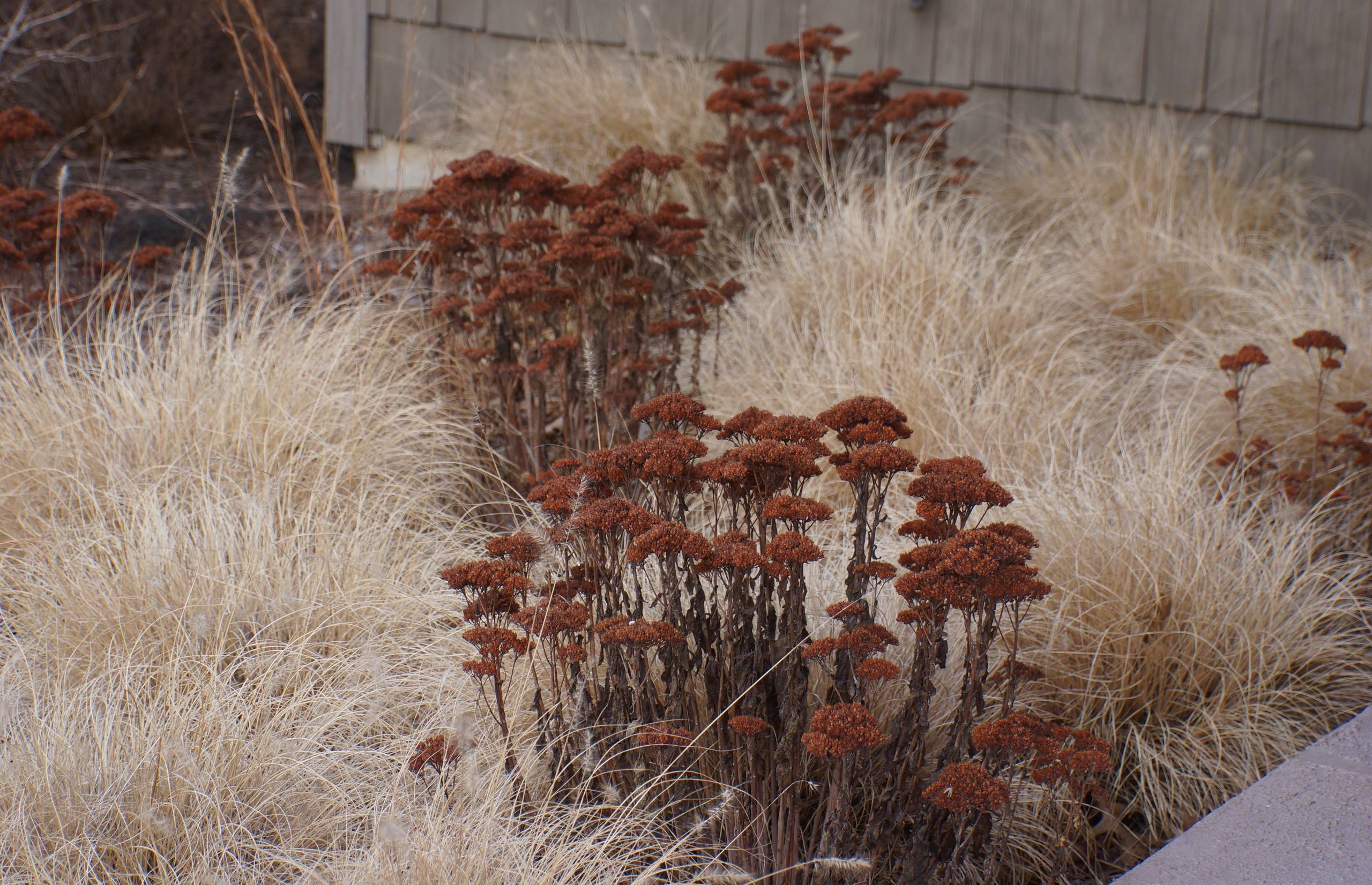 6. Winter matters. Don’t just think about how plants look in summer while in bloom. Look ahead to the cold season when some pretty stunning displays also happen. Long after the petals have wilted, what structure will your plants carry through the winter? What subtle, earthen tones will they hold, and how can you play them off one another?