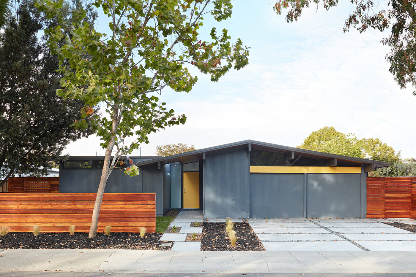 This cool shade of gray showcases the sleek midcentury lines of a classic Eichler home in Palo Alto, California. “It contrasts nicely with the yellow used for the front door and the beam over the garage door,” says Klara Kevane of Klopf Architecture.