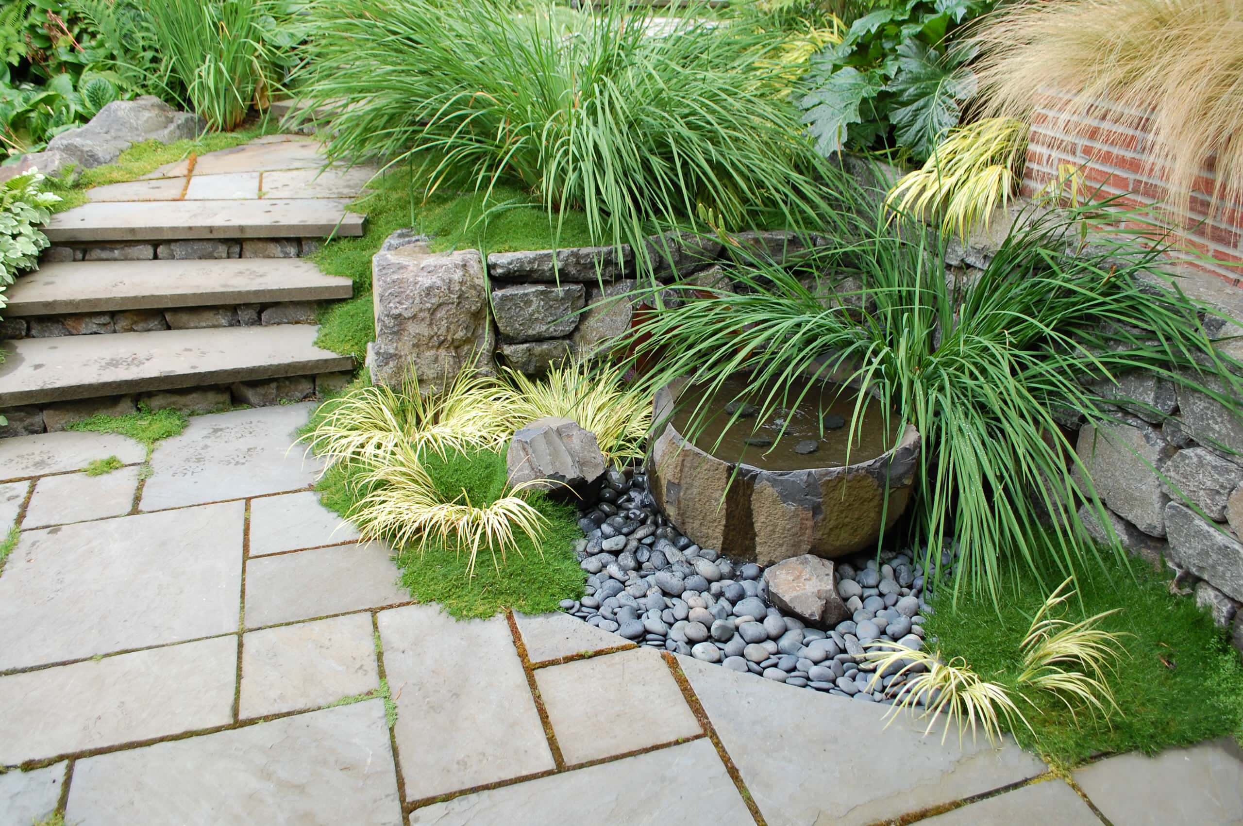 3. A single foliage type. Don’t be afraid to choose a single foliage type for a section of your shade garden. Add interest by mixing foliage sizes and colors. In this Seattle garden, strappy rules the scene.