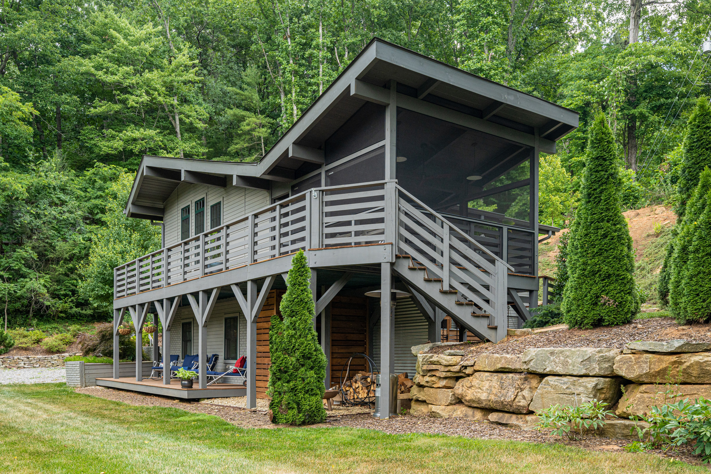 Bare patches of lawn and tossed-in-a-pile pieces of firewood once made up this North Carolina underdeck area. Above it lay only the house and an exposed deck. Interior designer Brooke Kern landed on the idea to create a screened-in porch, and the area below the entire upper level got a makeover too.