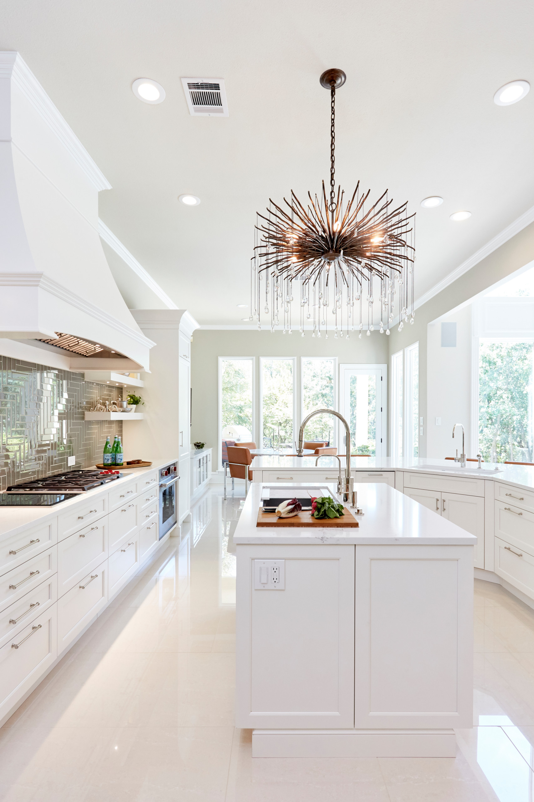Getting creative with light fixtures can amp up your neutral kitchen’s style, whether you choose one light over an island, as in this kitchen from Shylo Preston, or several fixtures throughout the kitchen. Consider unique shapes or dazzling finishes that will stand out against the plain backdrop of your kitchen.