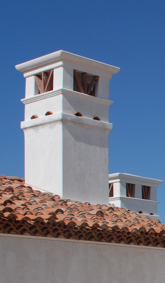 5. Tower-like chimneys. No detail is too small. This functional chimney is given special treatment with moldings and little windows.