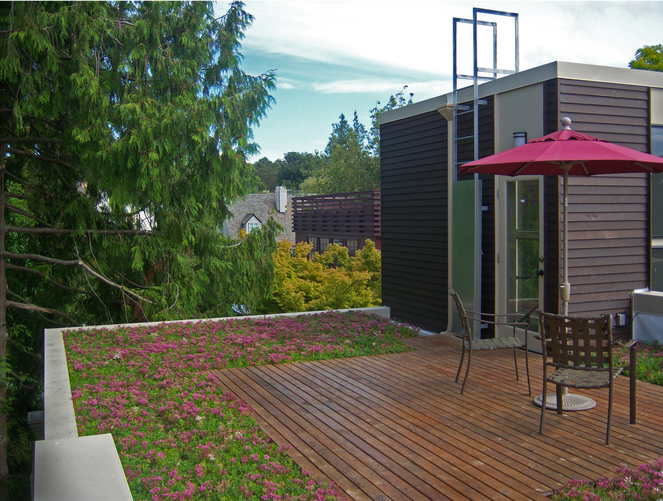 ... shows that it is used as a roof deck in an urban context, Seattle, Wash. to be exact. The roof is small, but it's a patch of green that the owners can enjoy while reaping the benefits of the green roof.