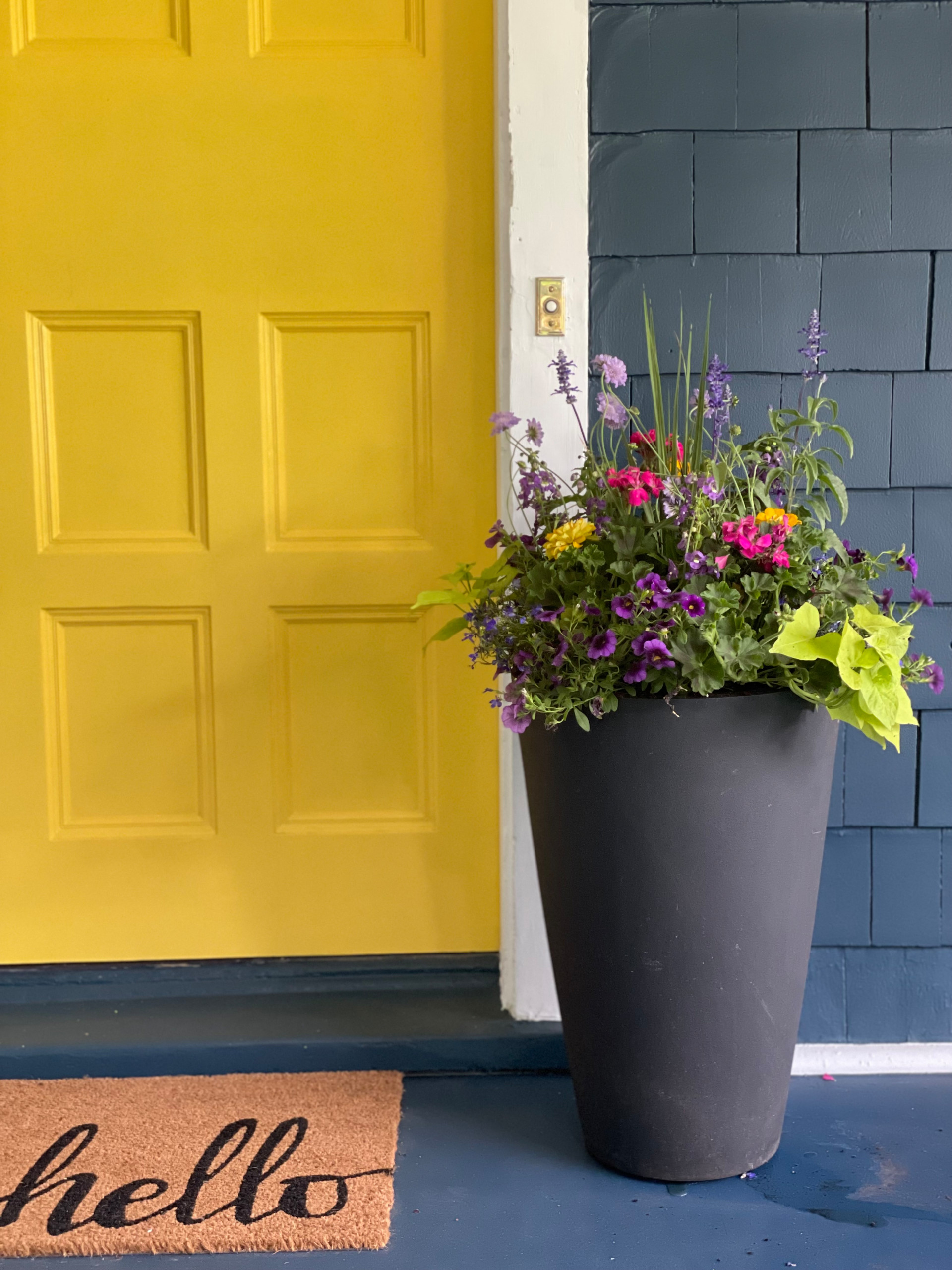 If you don’t have room for a larger deck right outside the back door, a medium-sized landing can be enough space to add potted plants to frame the door or a seat for one.