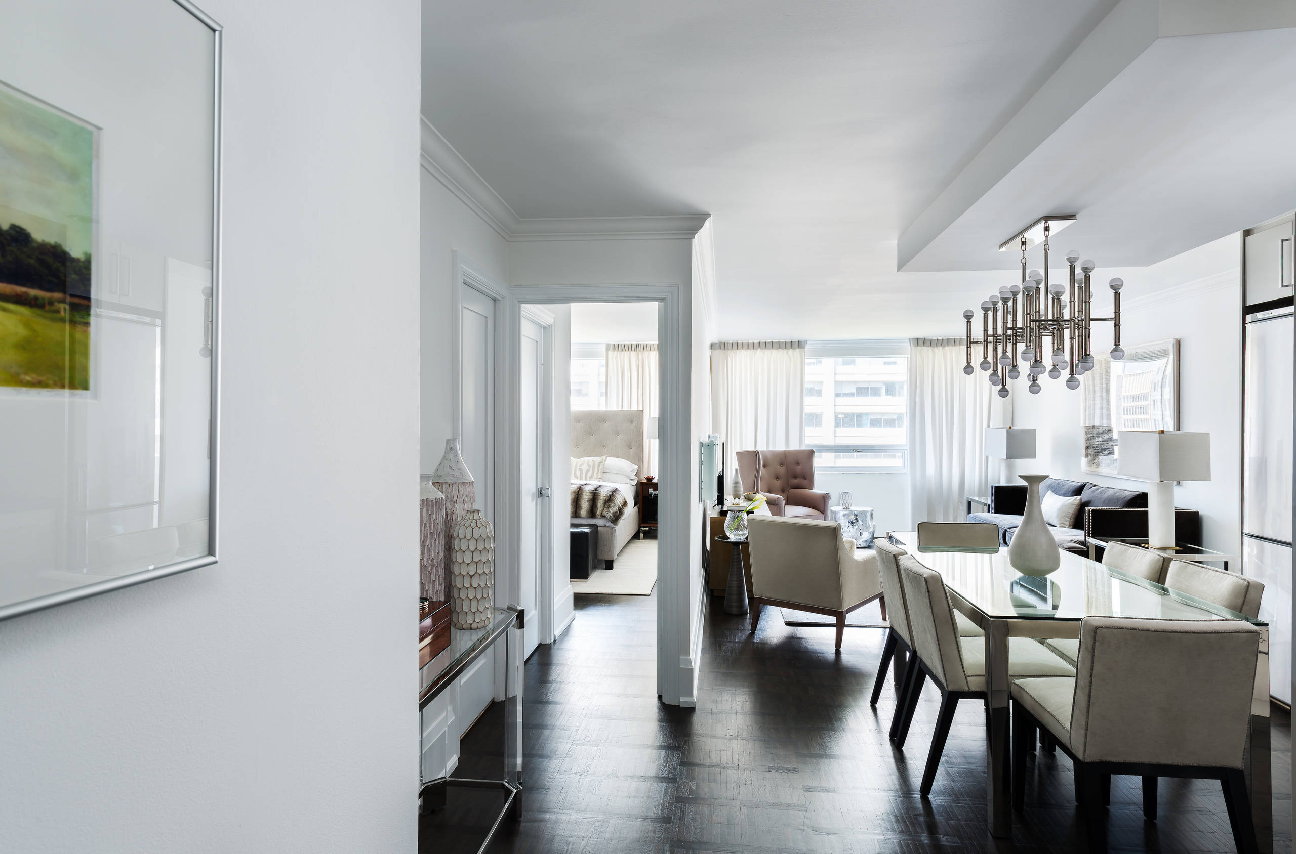 7. Dropped ceiling. Speaking of complicated electrical work, sometimes it can seem nearly impossible to add lighting in a space with a concrete ceiling not suited to taking on fixtures. This is where a dropped ceiling works on multiple levels. The drop itself helps define an area below (such as the dining area shown in this project I designed), while providing a space to run electrical to a chandelier or house recessed potlights.
