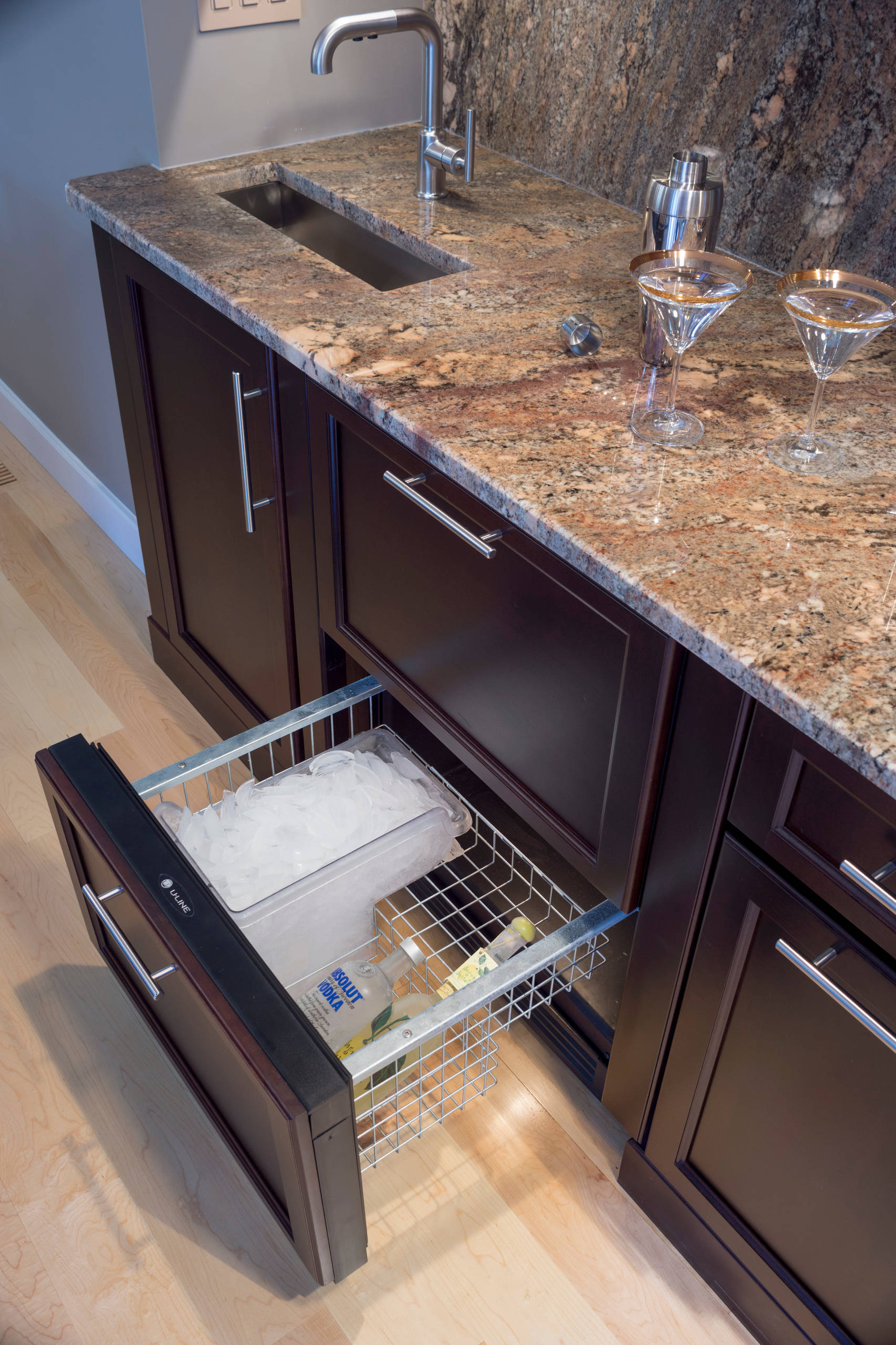 Our solution came in the form of a pair of freezer drawers in our kitchen island. They aren’t as deep as the drawer on a bottom-mounted freezer-refrigerator unit, but pairing them up means that I have ample space for all of my gallon bags of homemade chicken broth and giant balls of cookie dough.