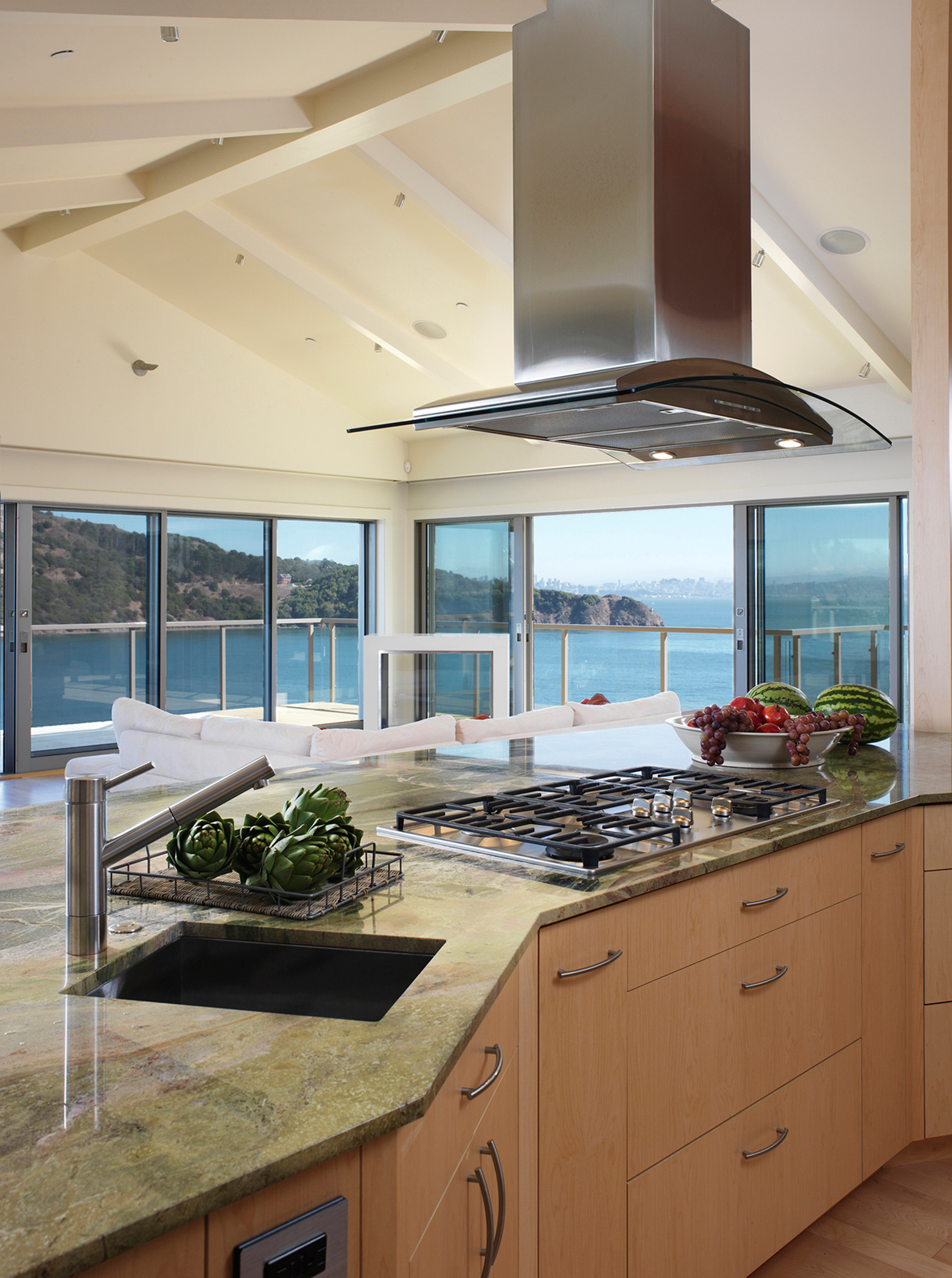 Chris Riddle of Riddle Construction and Design explains: “In an ideal situation the hood should be 6 inches wider than the size of the cooktop/range for maximum efficiency. Meaning a 30-inch range has a 36-inch-wide hood, a 36-inch range has a 42-inch hood and so forth.”