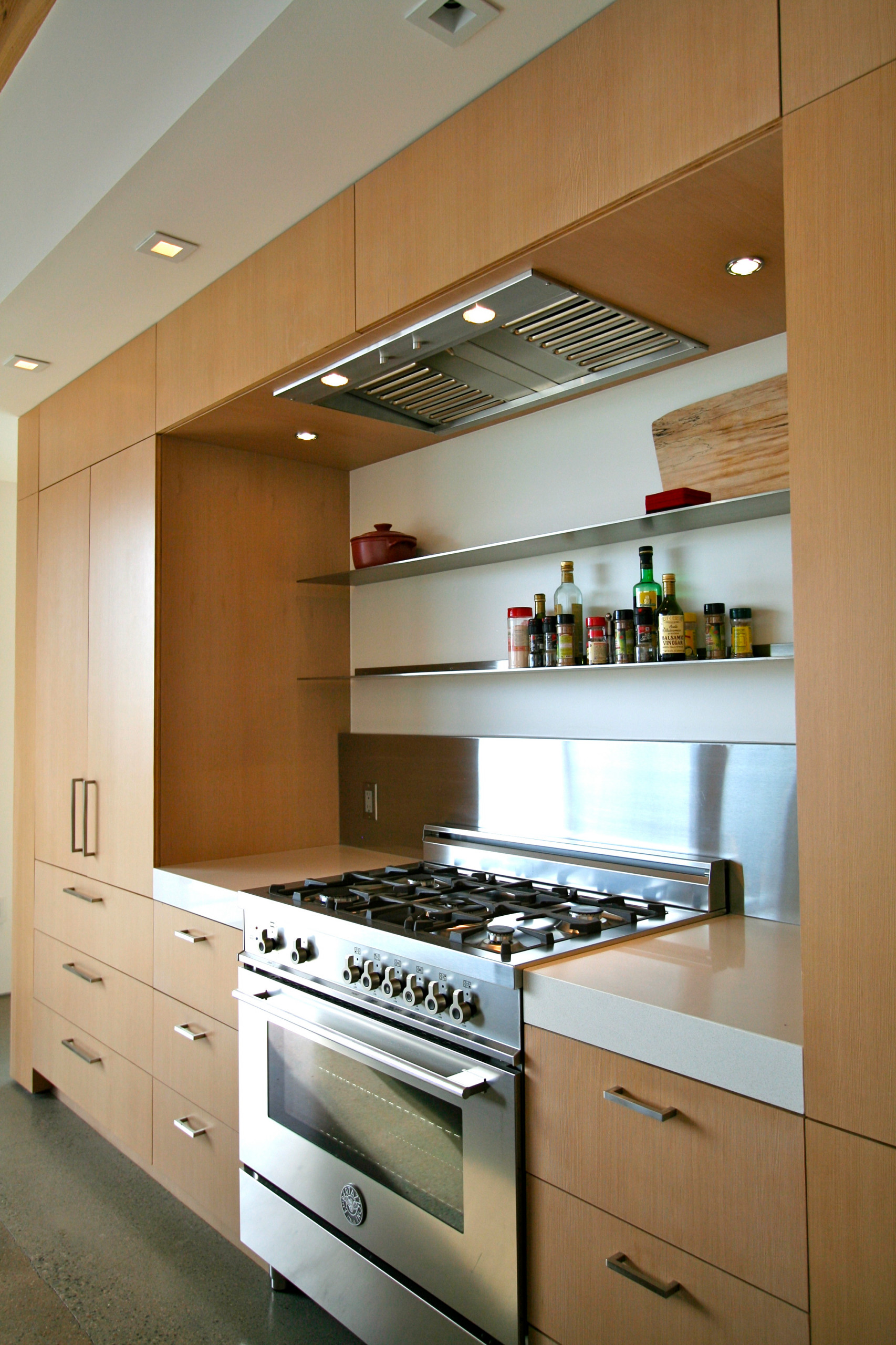 This one took a while to figure out. Although the fan we chose was powerful, we felt the low end of where our manufacturer suggested placing the hood was too low, and I was wary of placing it on the high side, because I sear meat often.