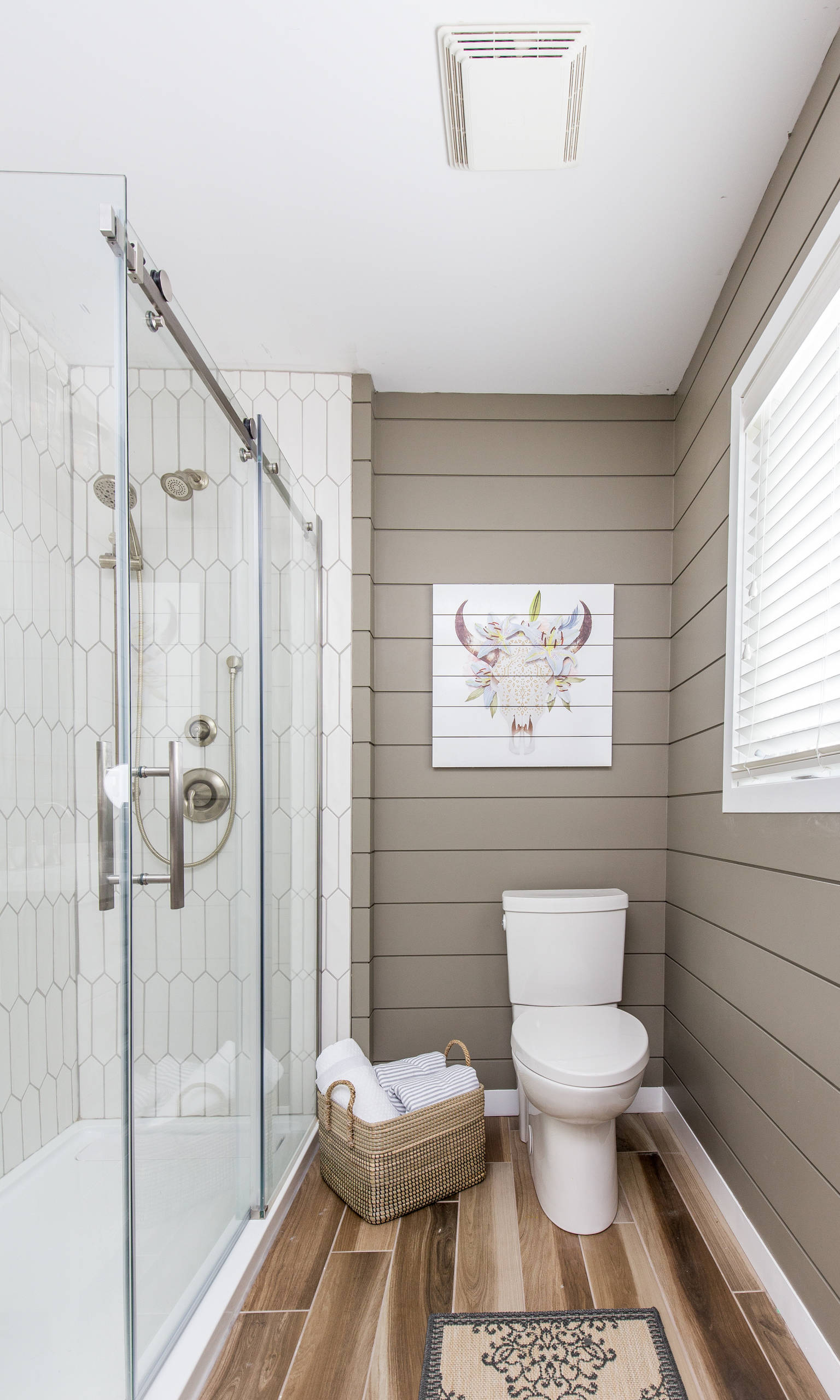 A New Take on Shiplap and Hexagon Tiles in the Bathroom