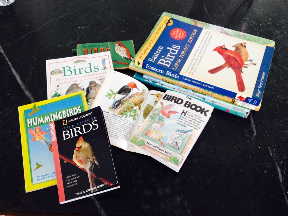 Once you know you’re committed, a field guide is indispensable. Field guides are books to help bird-watchers identify birds on the fly. The Peterson guides are the standards, but our personal favorite is the National Geographic Field Guide to Birds, Michigan edition. Buying a guide to your specific region is very helpful.