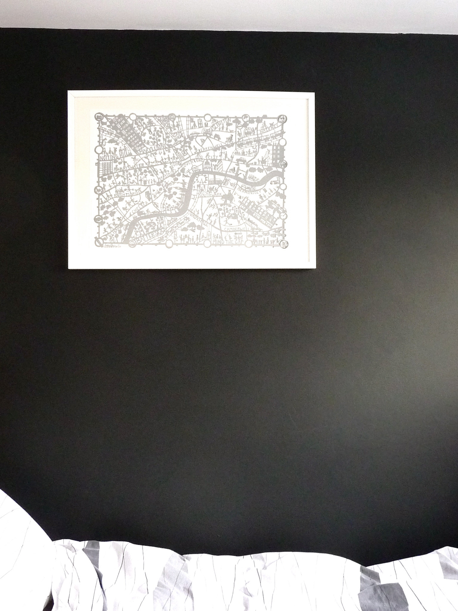 A dark wall lets this black and white map stand out.