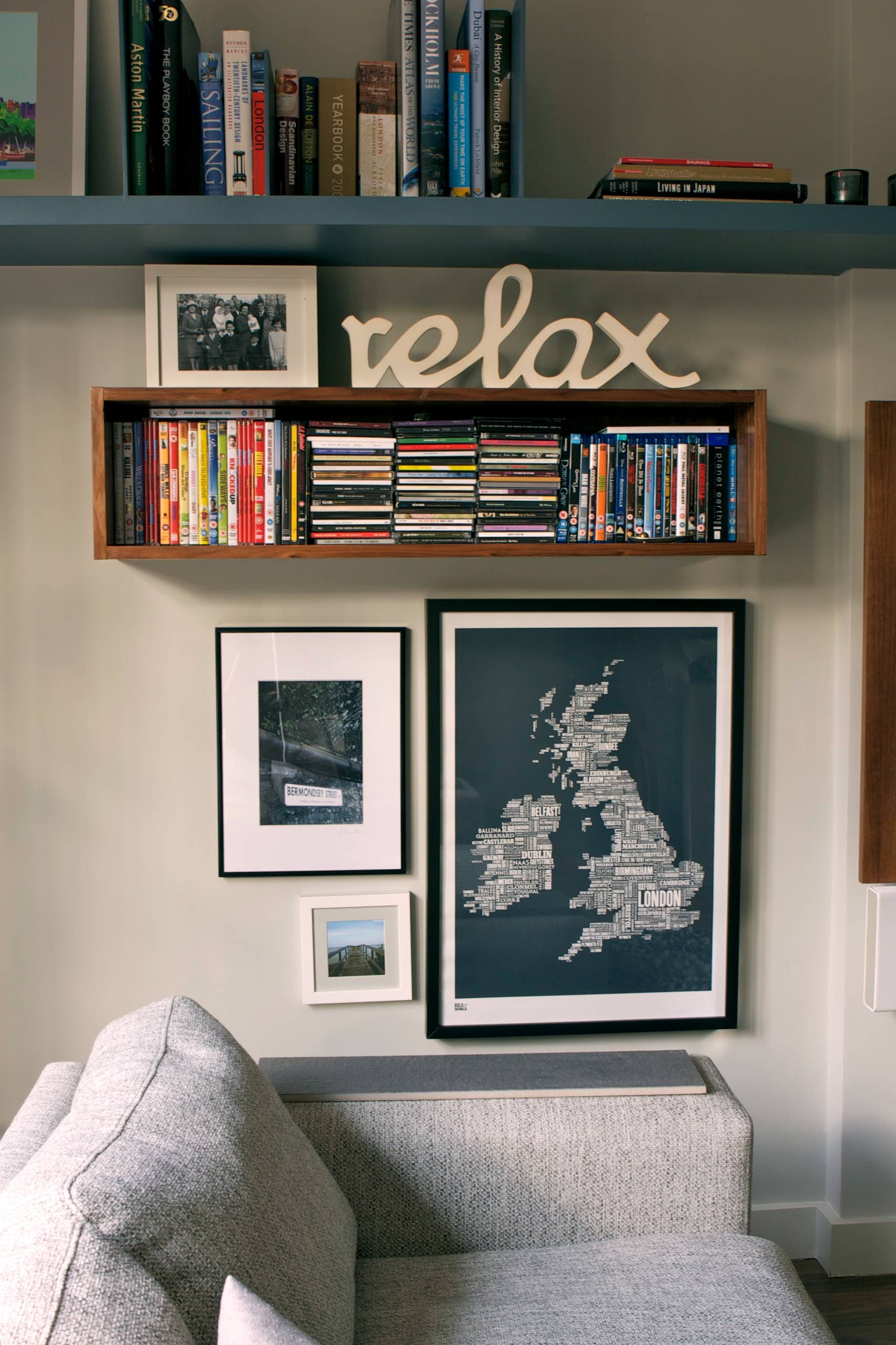 A map of the U.K. brings both geography and typography into the room.