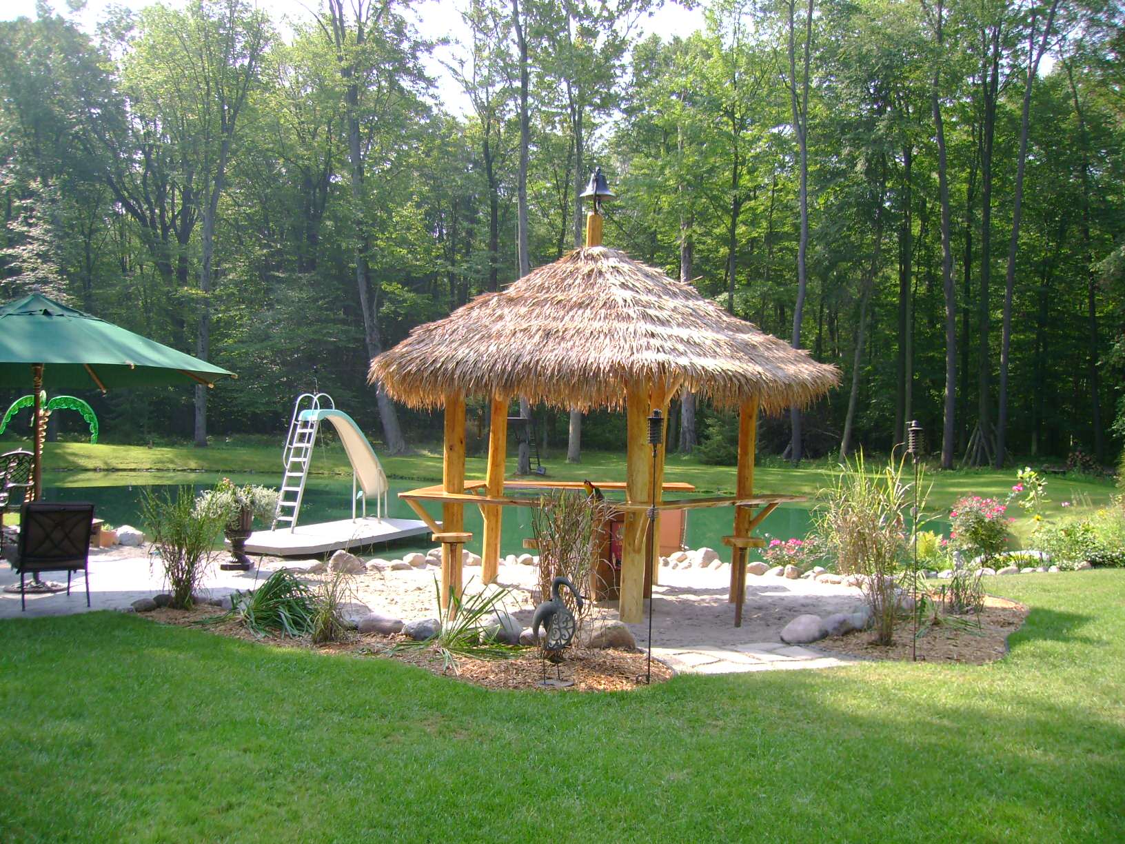 Here’s a photo submitted by a Houzz user whose clever spouse constructed his own tiki hut out of dead ash trees found on their property. Built on a sand pit with a real thatch roof imported from Mexico, this little cabana is a tropical dream come true for its Detroit homeowners.