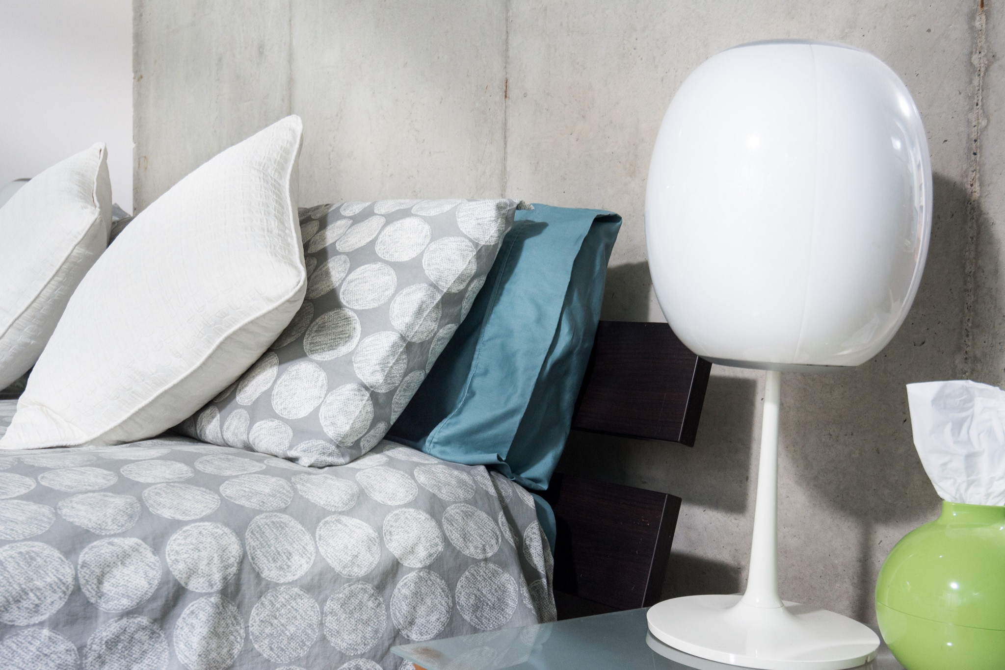Bed: Modway; duvet cover: West Elm; pillows: HomeGoods