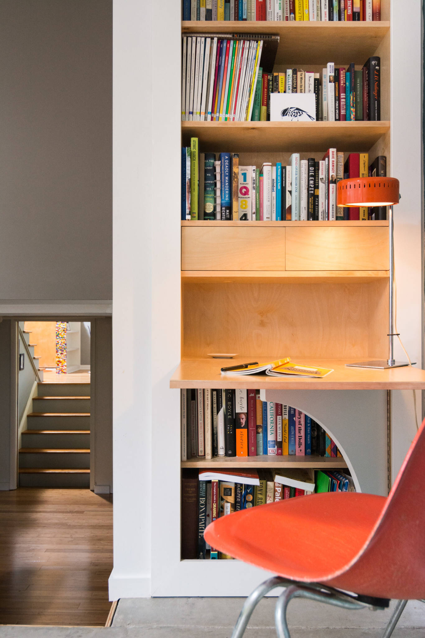 Workspace. Walters’ husband, who is a real estate agent, frequently works from home at this fold-down desk.