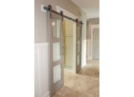 Glass-paned sliding barn doors are a modern alternative to traditional French doors and take up a lot less floor space.
