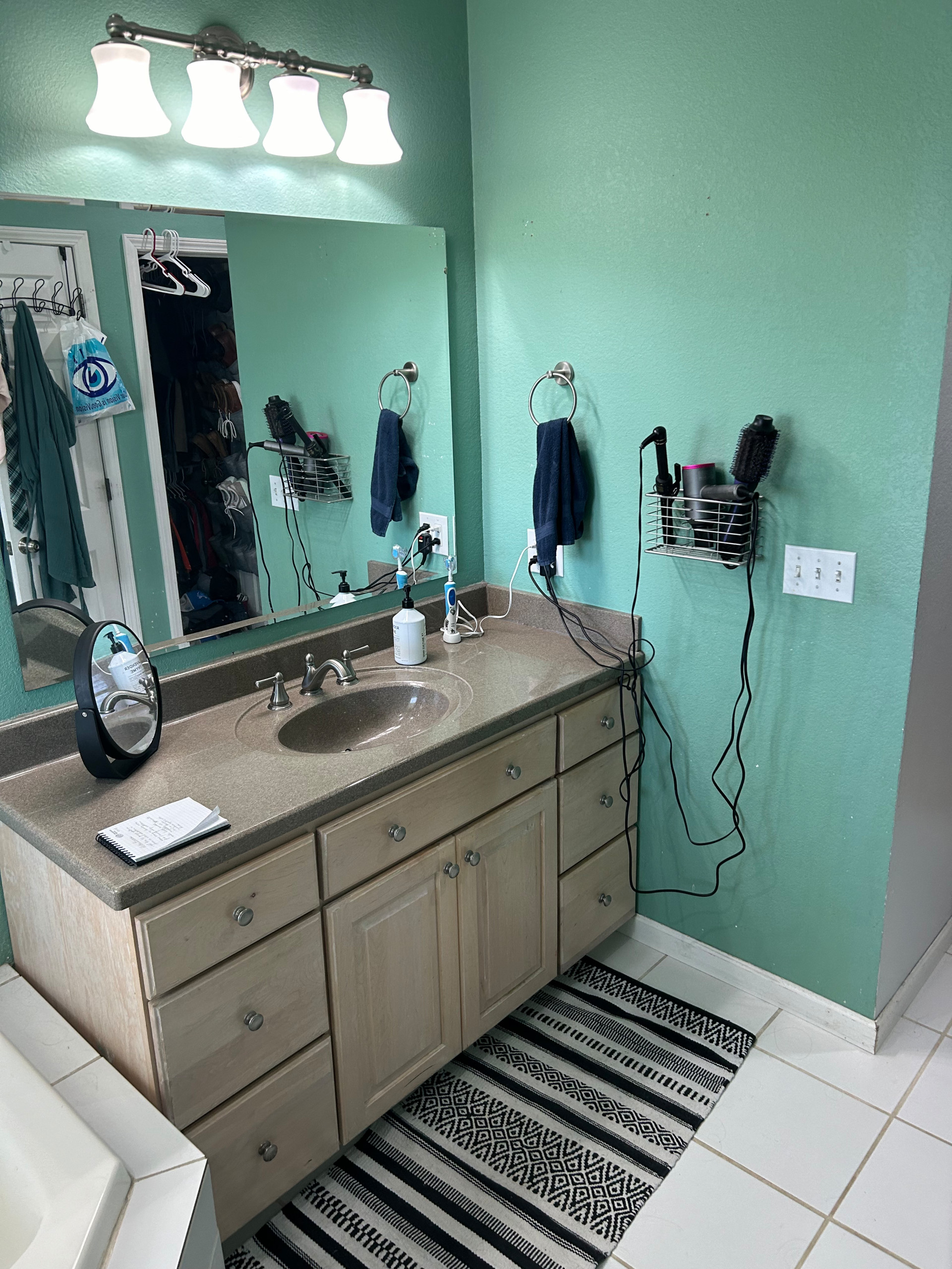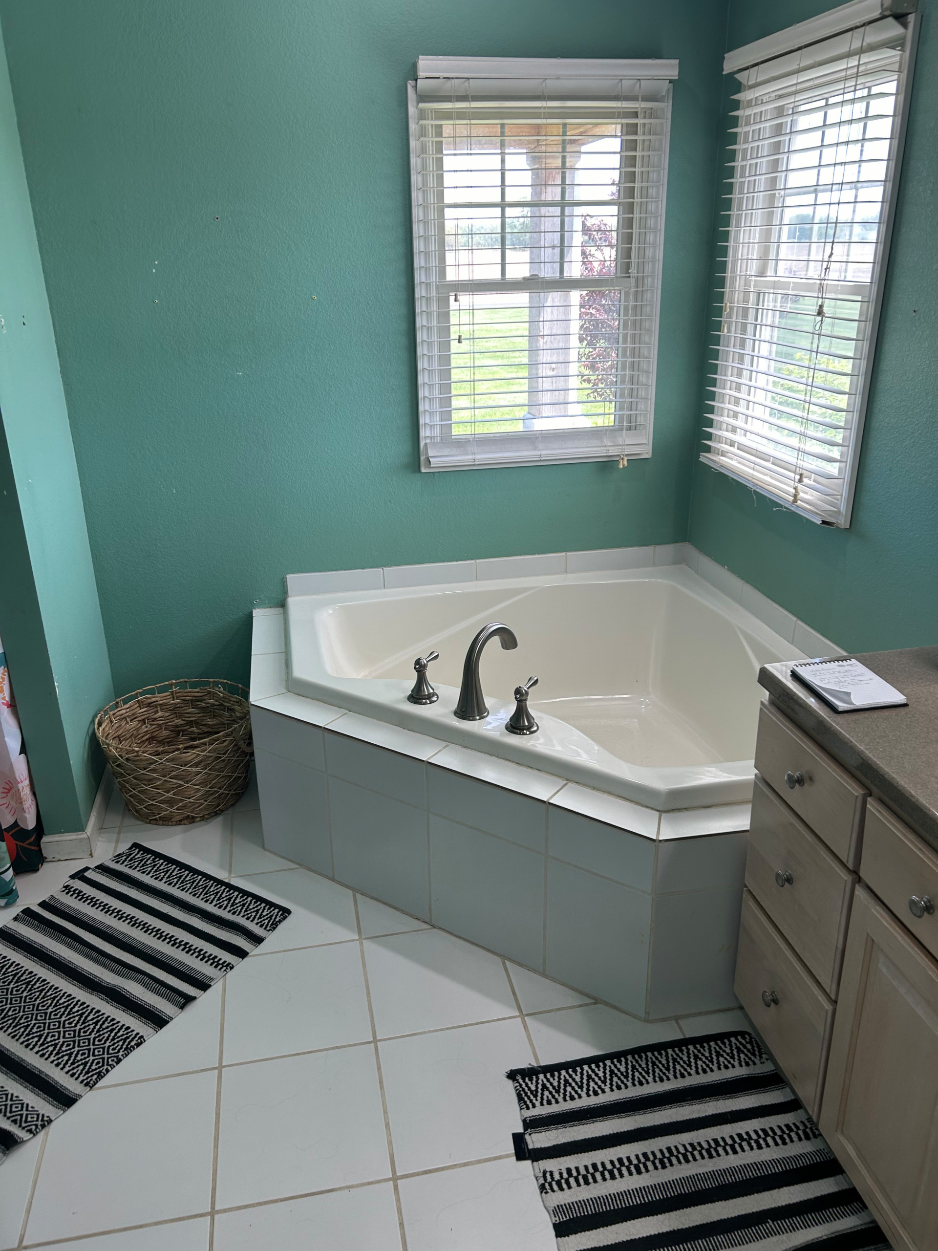 Twenty years after building their home in the countryside outside Fayette, Ohio, this couple were ready to rethink their primary bathroom. The teal walls, single-sink vanity and corner shower-tub layout felt dated and underwhelming, especially the tub they rarely used and the cramped storage. They had always imagined a more customized retreat that reflected how they actually live, but the options just weren’t there when they built the house.