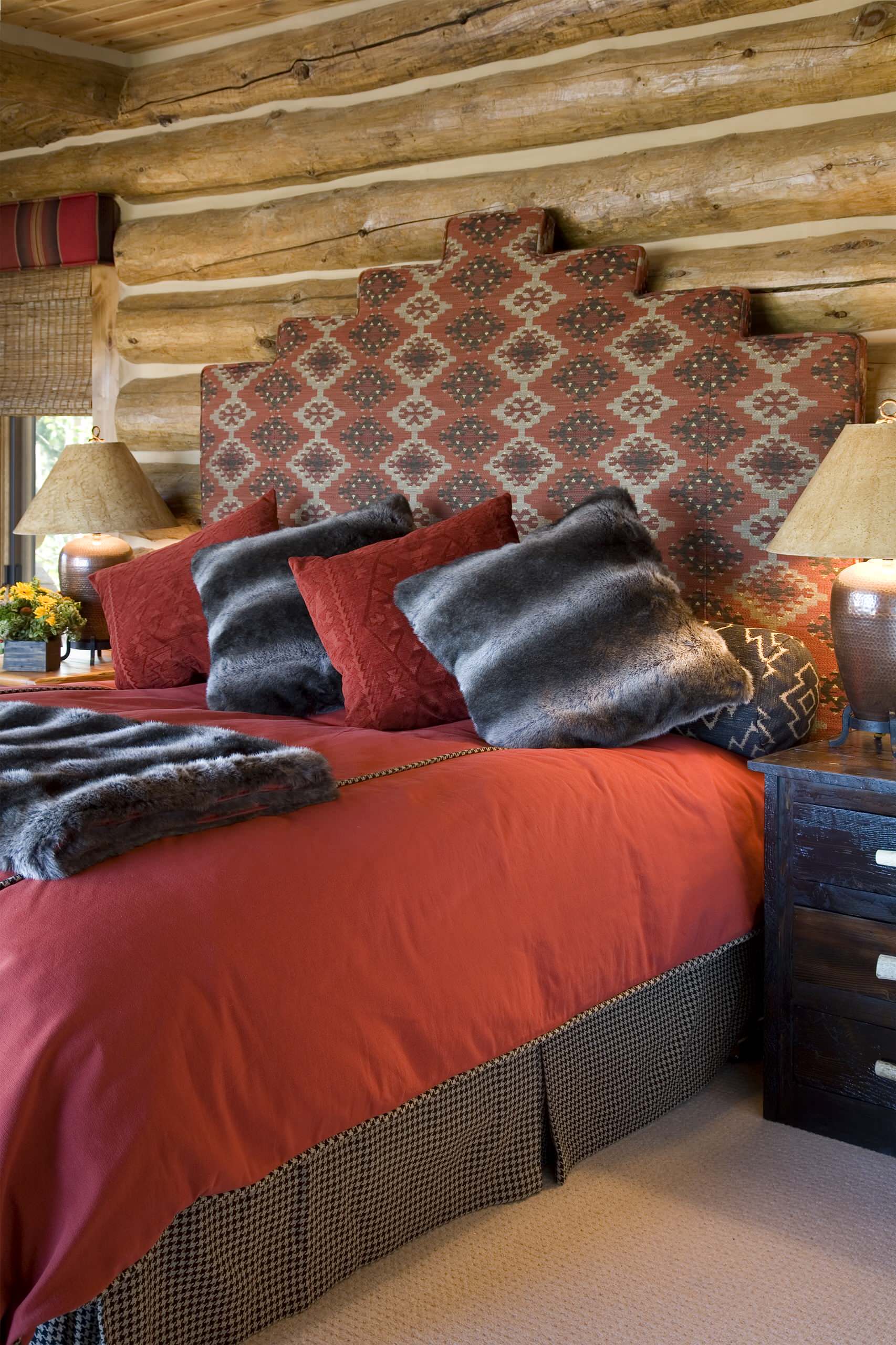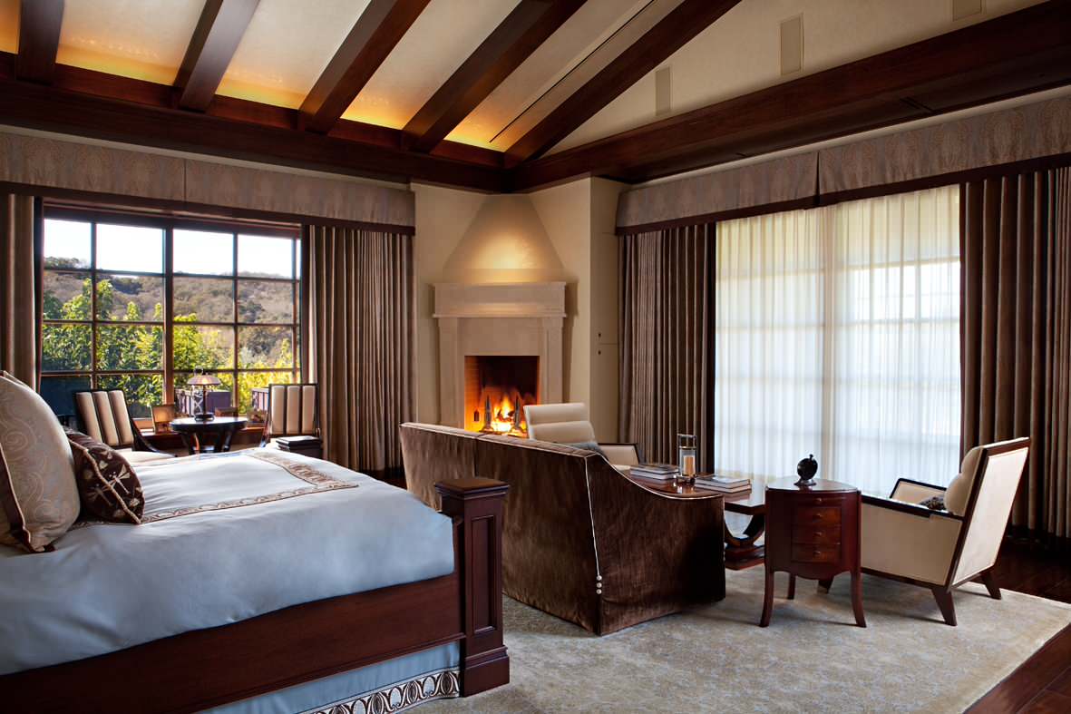 Gathered bed skirts can be customized by trim (tassels, beads, a fabric band or flat tape along the bottom) or by fullness. The ability to boost fullness is the domain of custom fabricators, and if you choose to go this route, you can elect to have your bed skirt pool (or, “puddle,” as it’s known in the industry) on the ground. It’s a look one would expect to see in opulent French interiors, but this photo shows how the puddled style can be used to great effect in a casual setting that lets guests know they can let their hair down here and not fuss with hospital corners and other hallmarks of bed-making perfection.