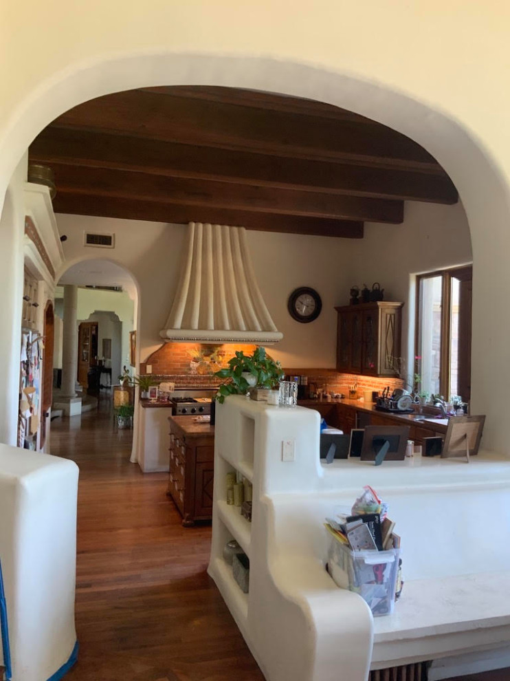 Before: As part of a whole-house gut remodel, these Arizona homeowners tasked designer Amy Klosterman with streamlining their hodgepodge kitchen. One important wish list item: an island big enough for casual seating. Using inspiration photos from Houzz, Klosterman designed an elegant space with proportions that suit the 13-foot barrel-vault ceiling.