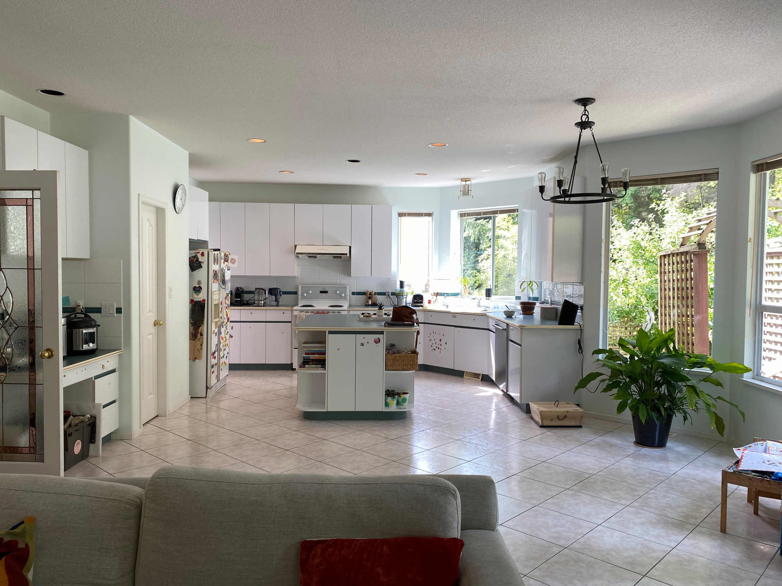 Before: Wasted space between the kitchen and family room of this Canadian home offered designer Lori Steeves a fantastic opportunity. The goal: to create more space where one of the homeowners, a vegan, could prepare meals, and where the couple and their two kindergartners could hang out as a family. And the 1990s style had to go.