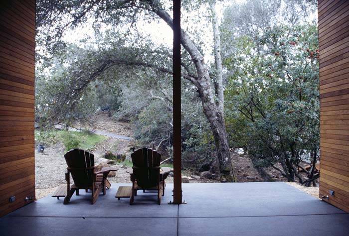 This is my favorite view of this breezeway. It shows the vista and how this space is the perfect spot to sit and enjoy the house and its surroundings.