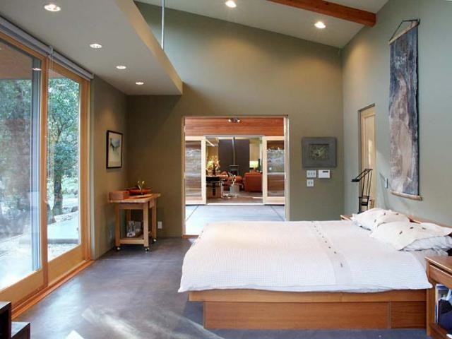From the master bedroom (the 1/3 part of the plan), a view to the living area happens through the breezeway. These indoor spaces can be further cooled by opening to this outdoor space.