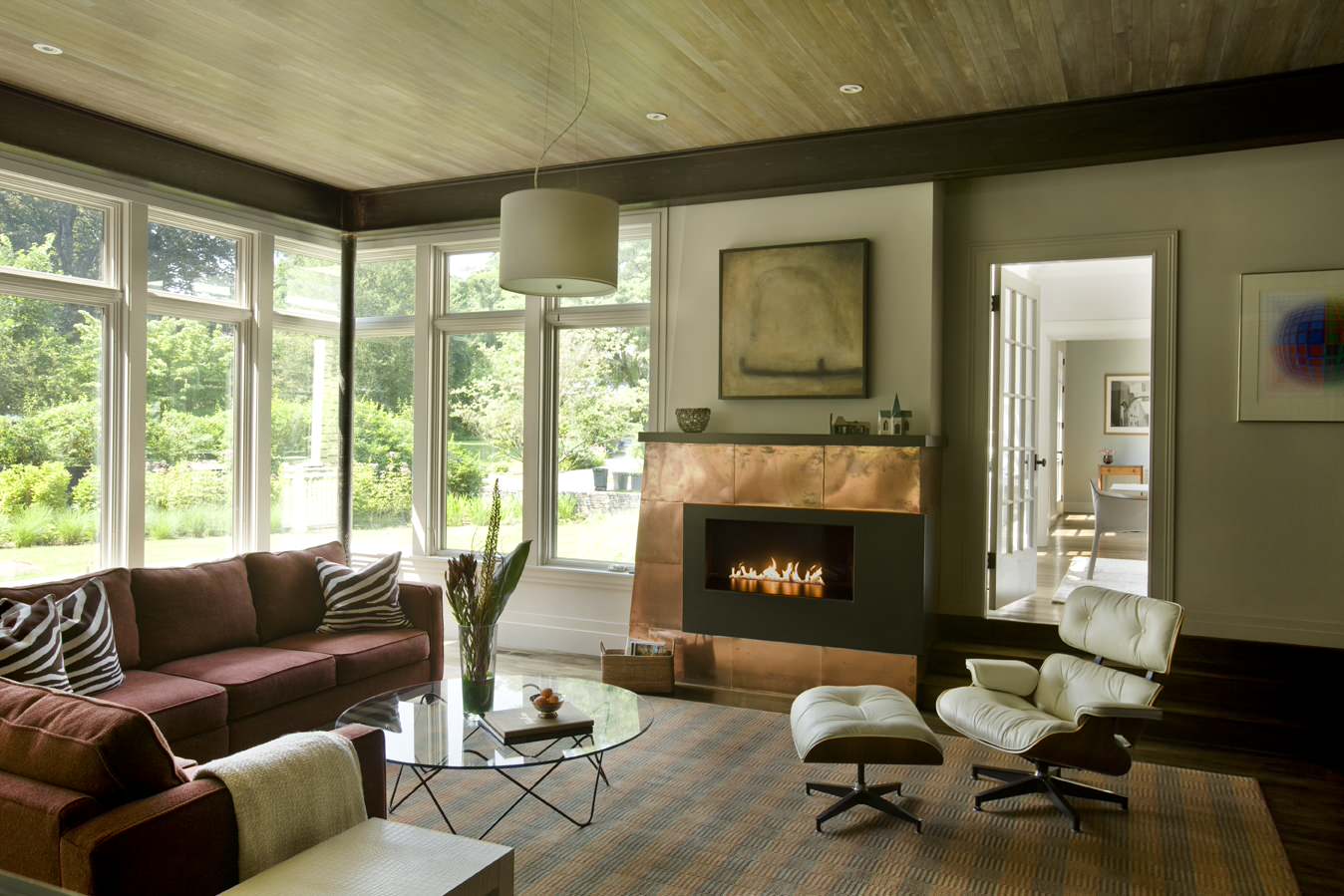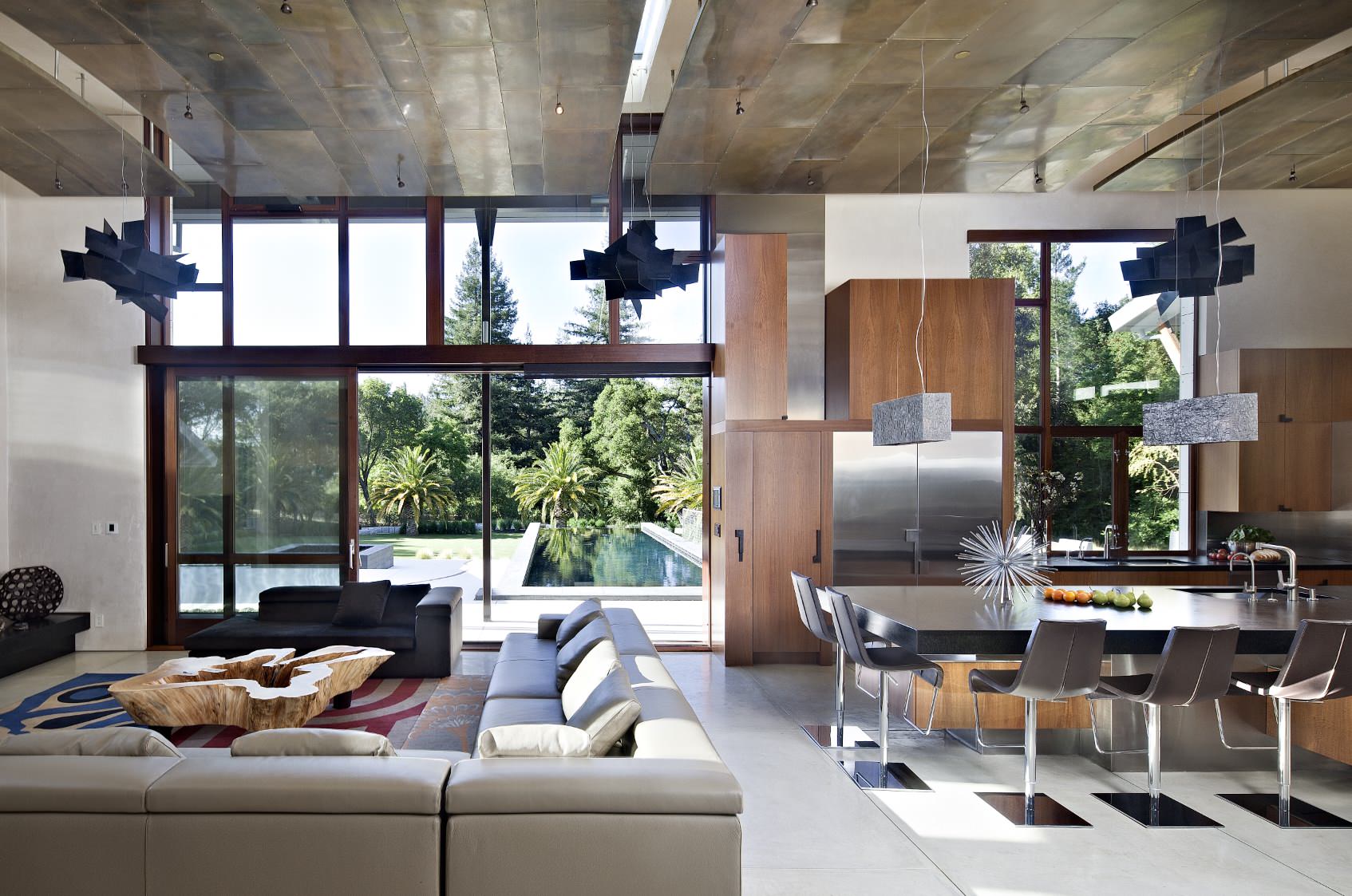 The bronze ceiling tiles in this photo are a very cool and modern alternative to traditional tin ceiling tiles. This is one way to add some industrial chic to your home. One side benefit of placing metallic tiles on your ceiling instead of your floors is sidestepping the radiant heat issue mentioned previously. Since you won’t be touching them, you don’t need to worry so much about their temperature, as you would with floors.