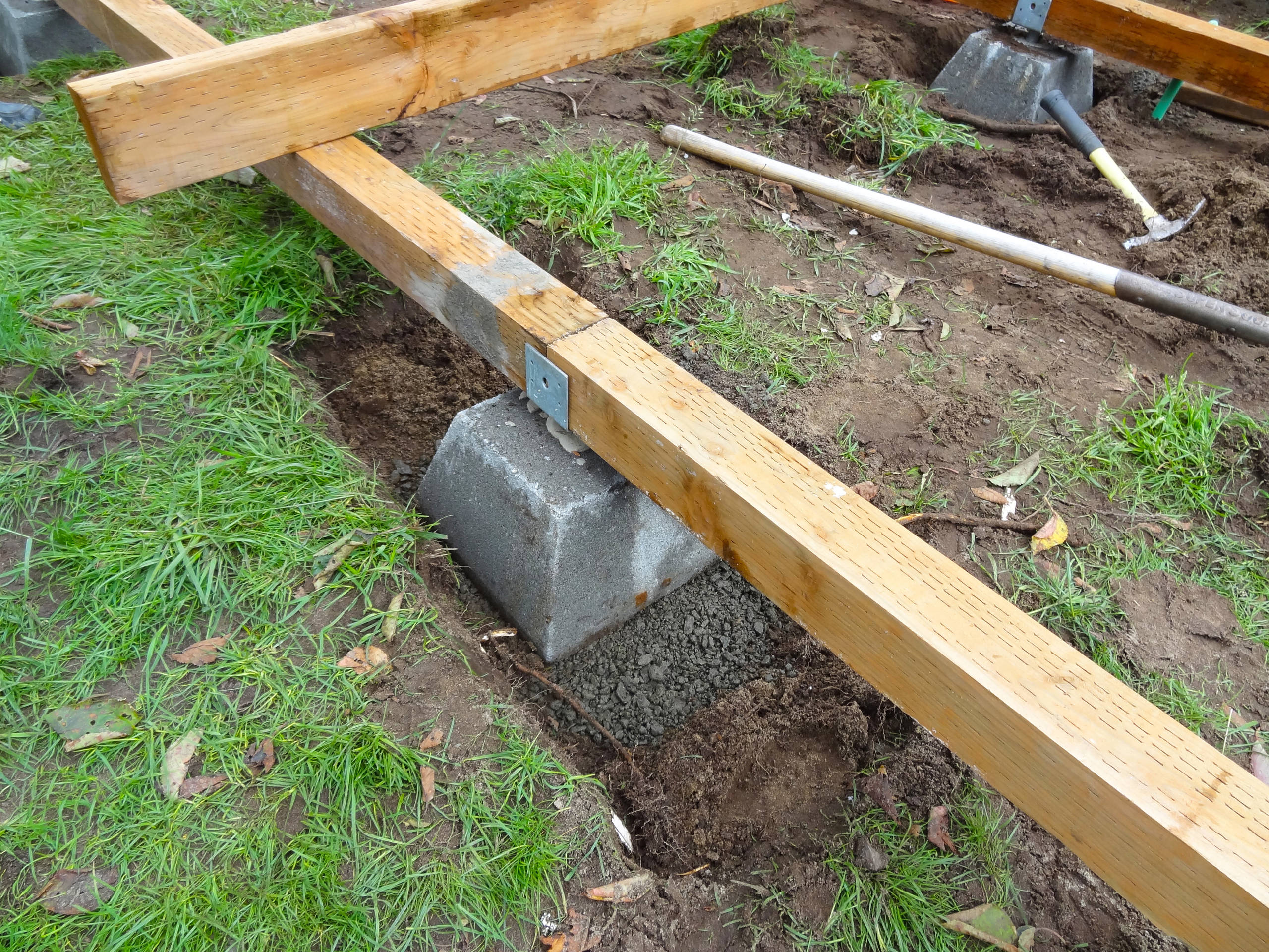 To place the supports, measure your desired distance for the first support beam and set all pier blocks. Both your support beams and pier blocks should be no more than 6 feet apart.
