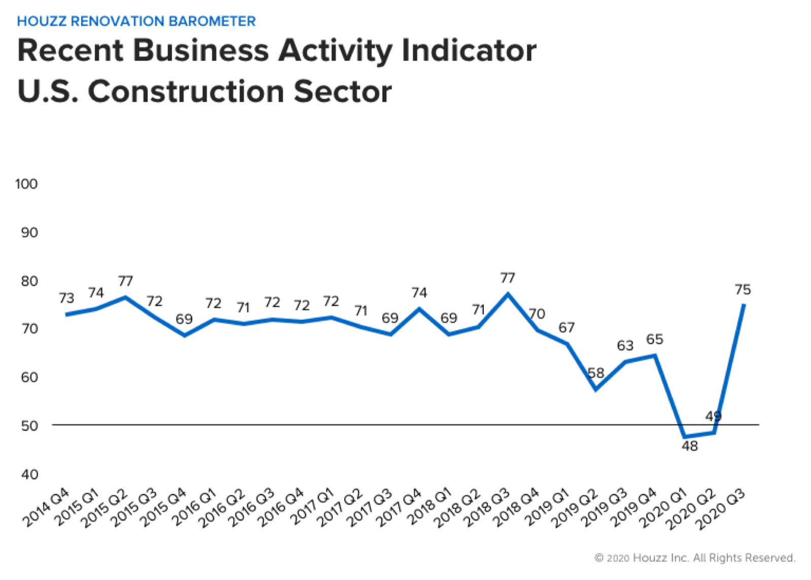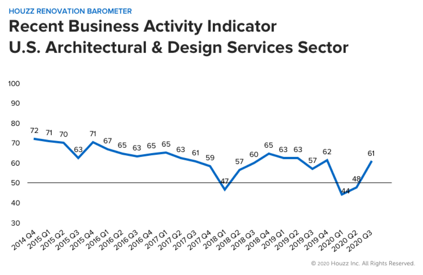 “Home professionals have a positive outlook through the end of the year, despite unprecedented uncertainty due to the pandemic and the upcoming election, increasing supply chain constraints as well as shortages in the labor market,” Sargsyan says. “Pros are taking on new clients remotely using online tools and collaboration platforms, continuing the momentum from the recent quarter.”